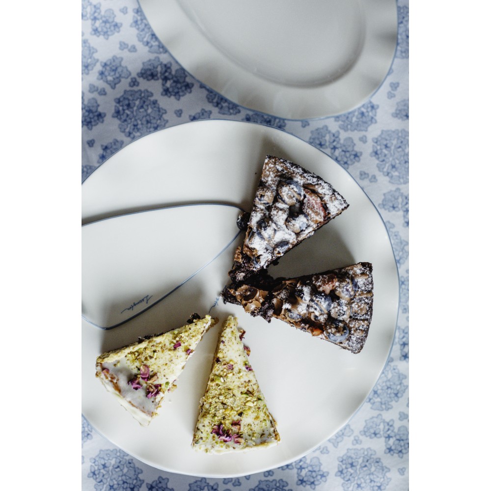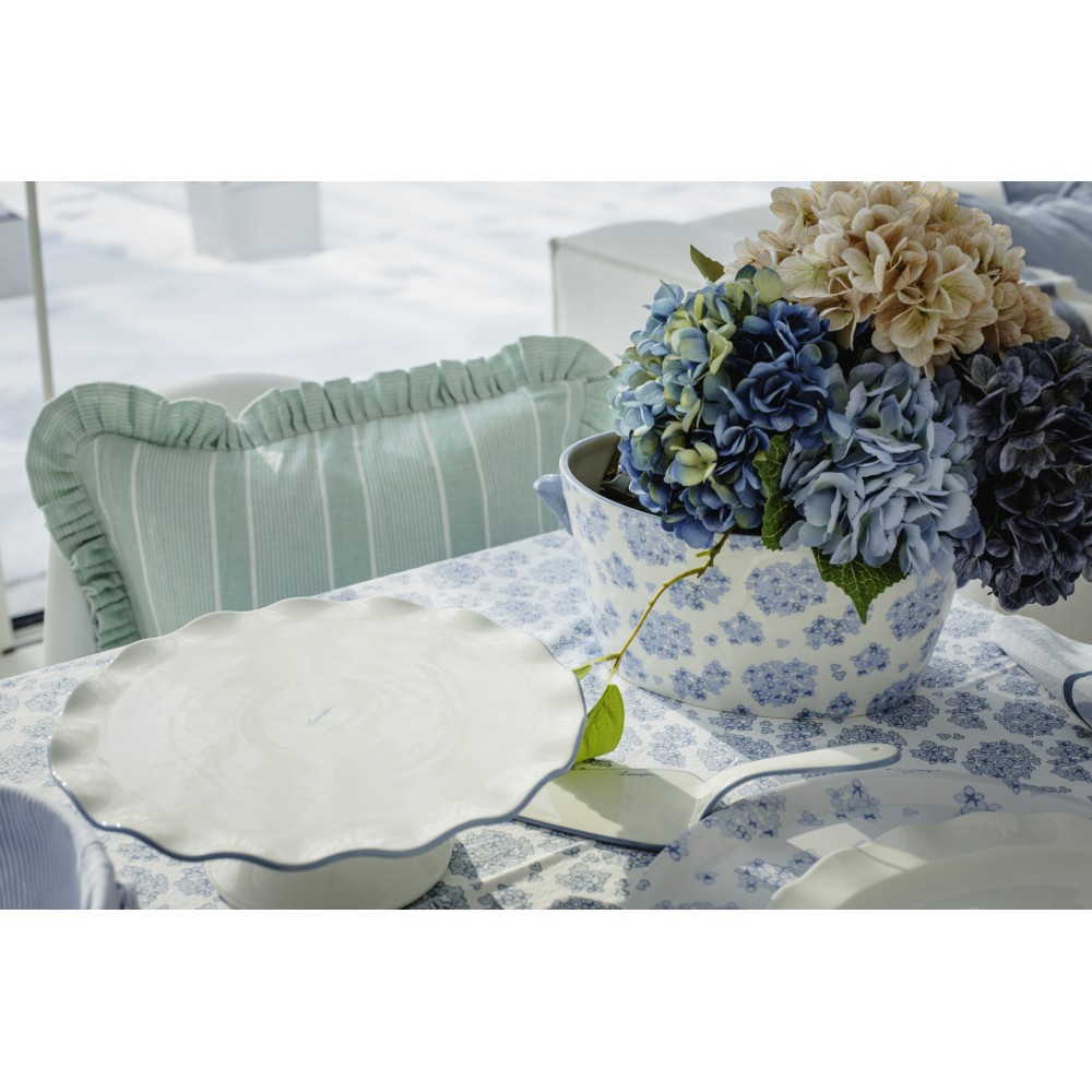 • Stoł do ciasta z ręcznie malowanymi brzegami w średnim niebieskim