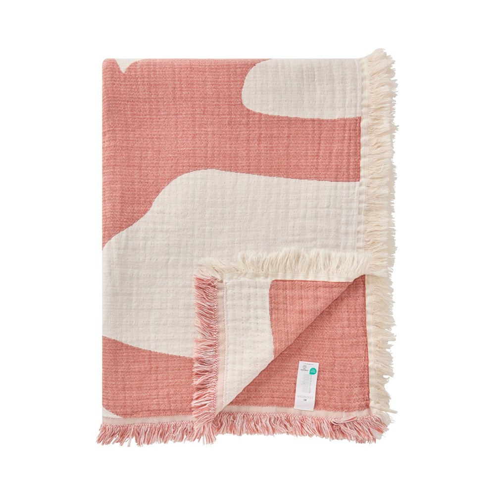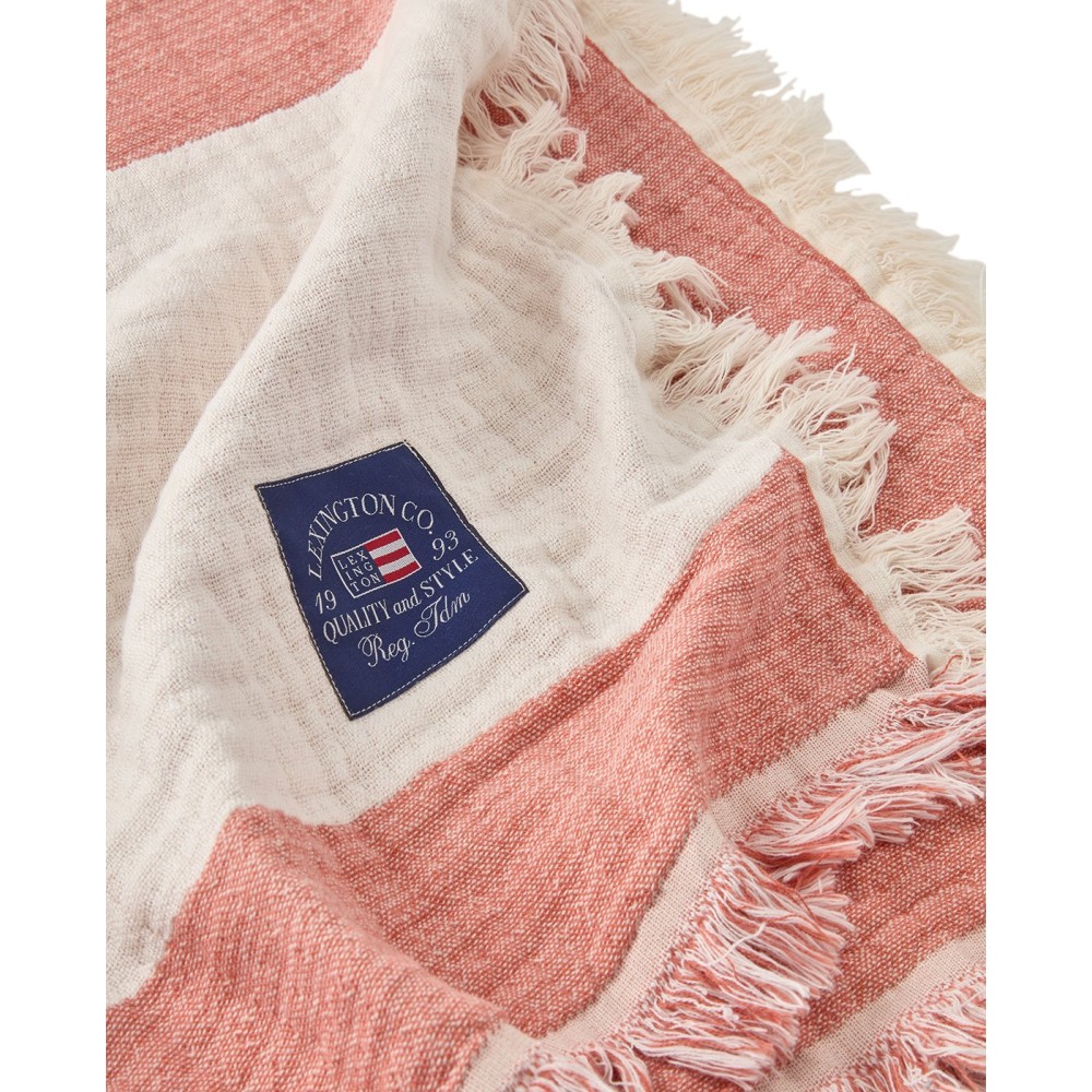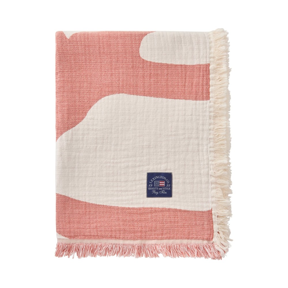 Koc/Narzuta-Koralowy żakardowy z bawełny organicznej, koralowy/biały-12524001-Lexington