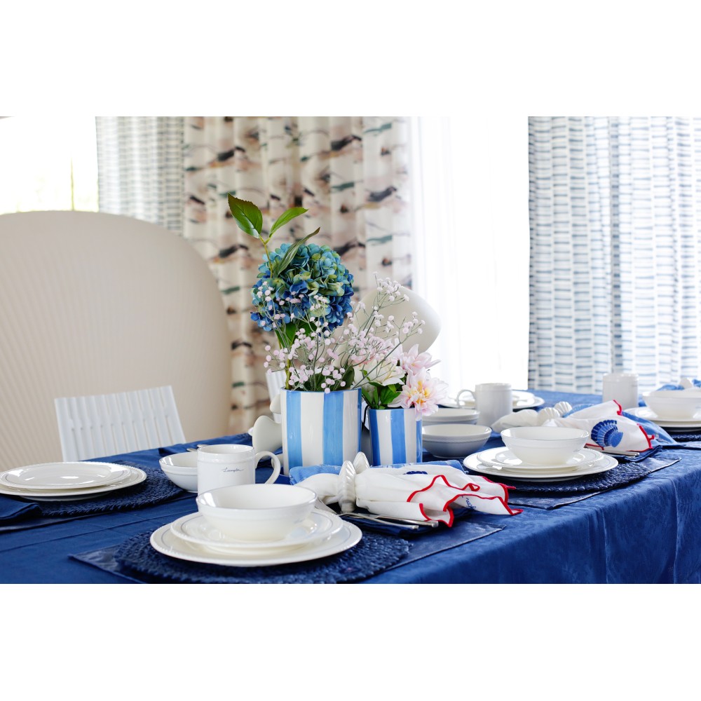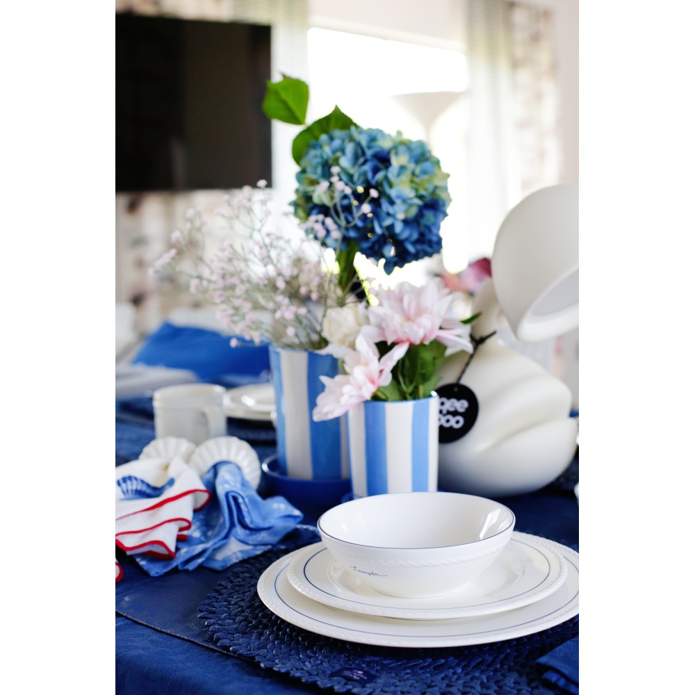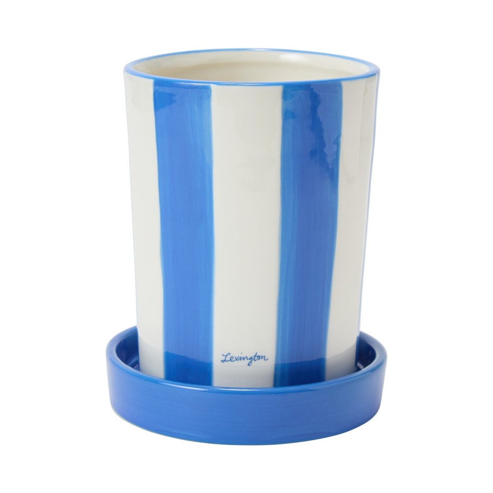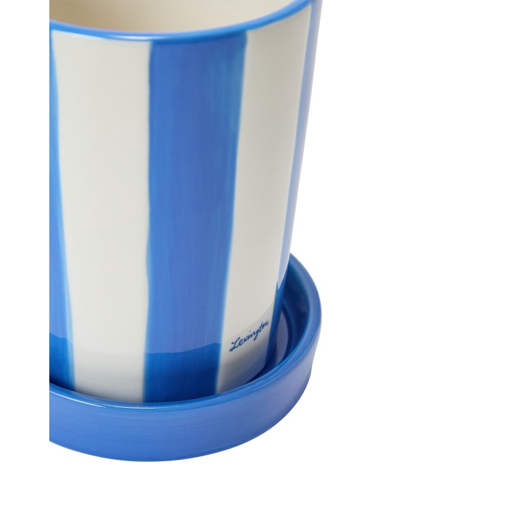 Doniczka z kamionki w paski, niebiesko-biała-12528008-Lexington