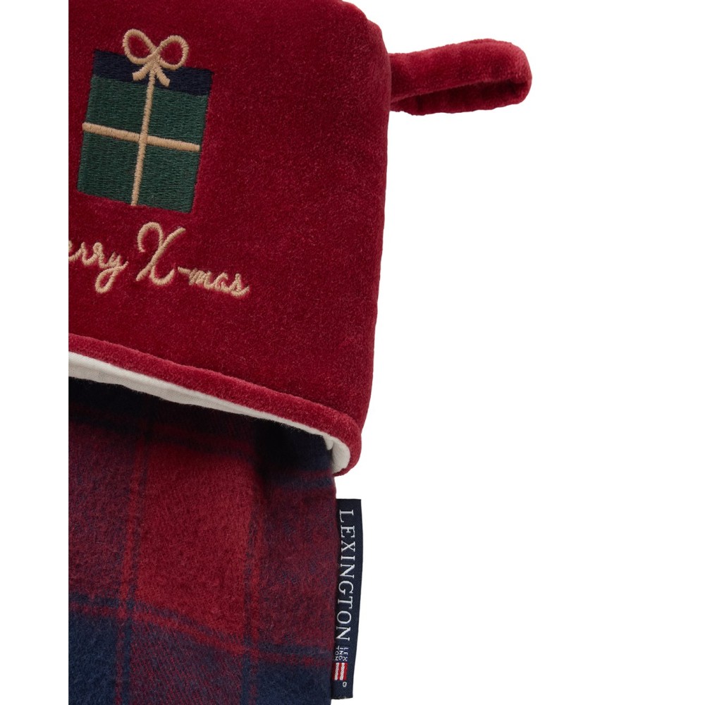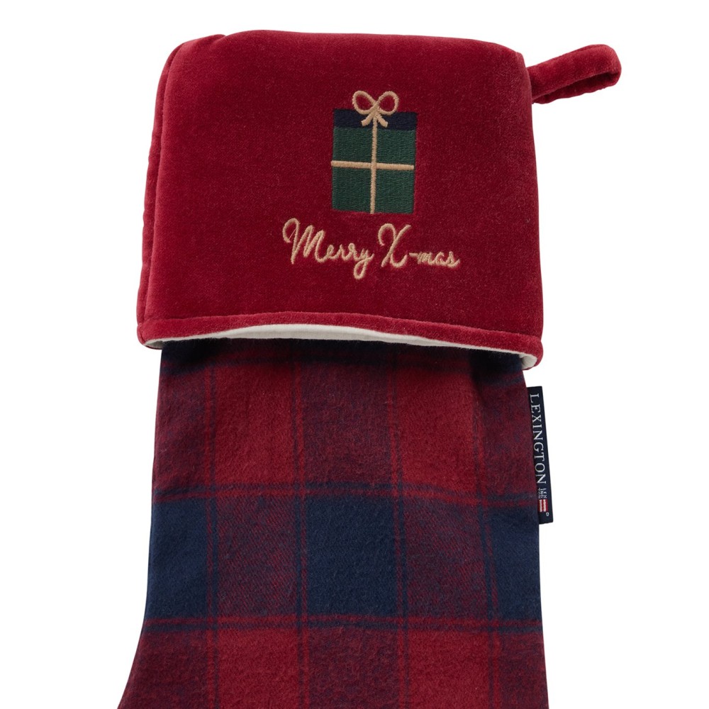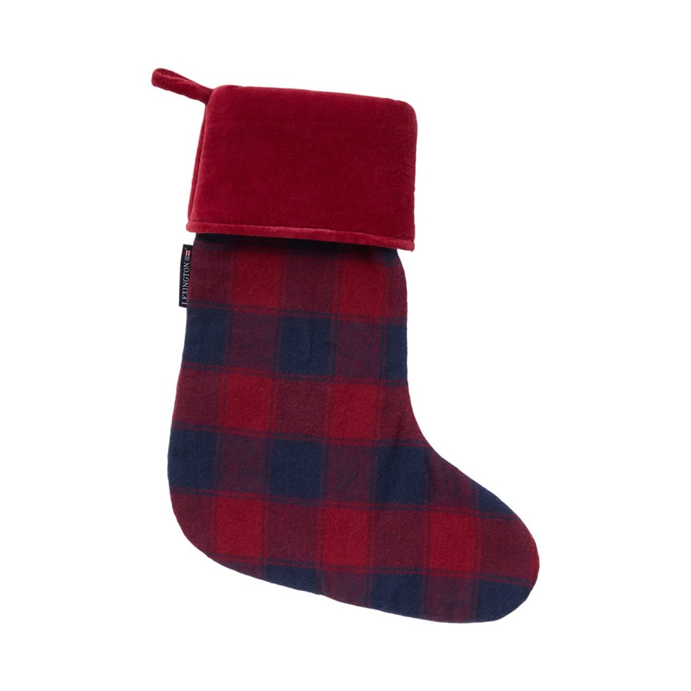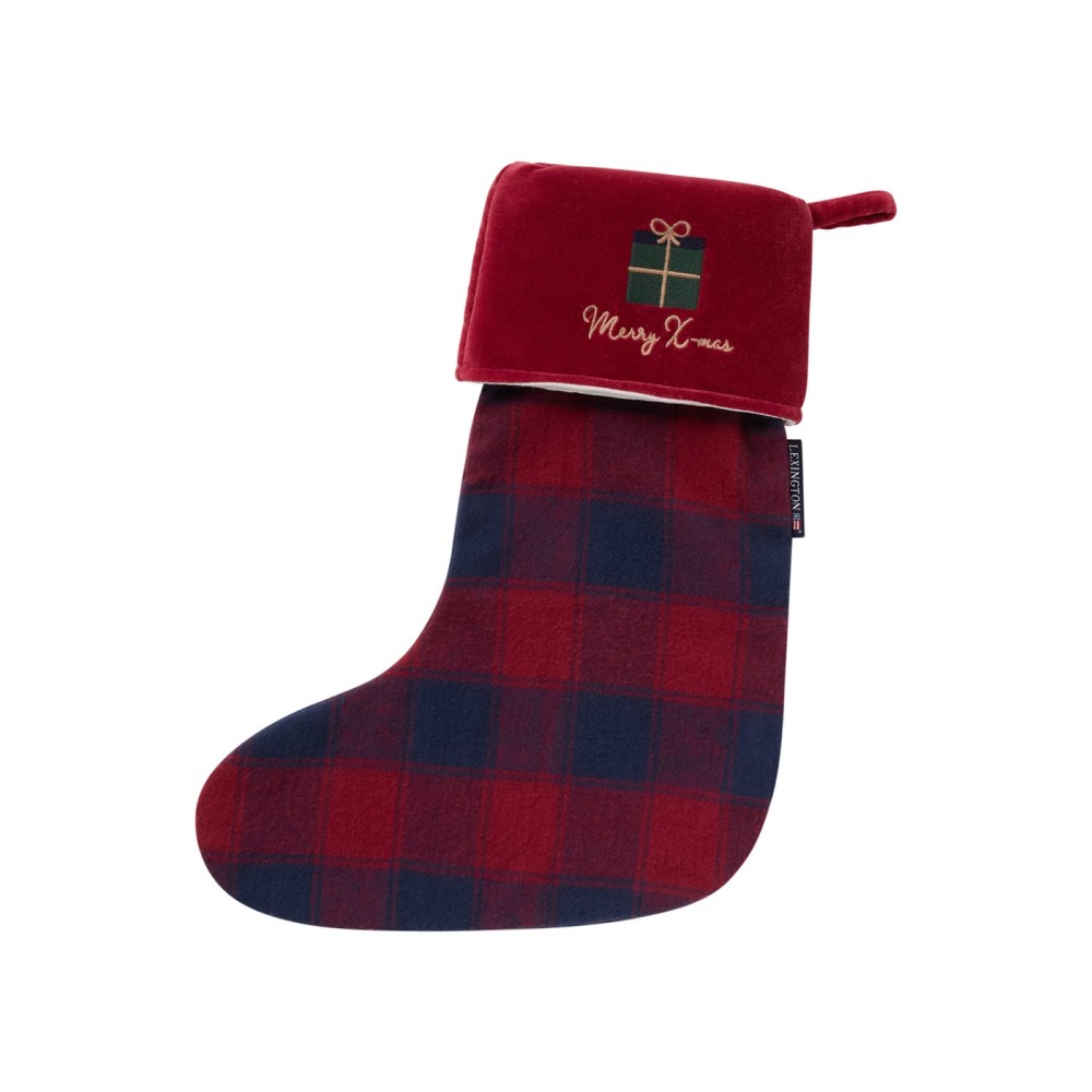 Skarpeta świąteczna w kratę z bawełny organicznej, granatowe/czerwone-12548028-Lexington