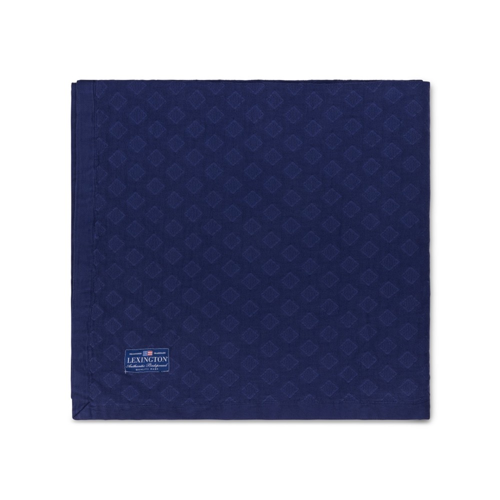 Narzuta z bawełny organicznej żakardowa w romby, granatowa-12530101-Lexington