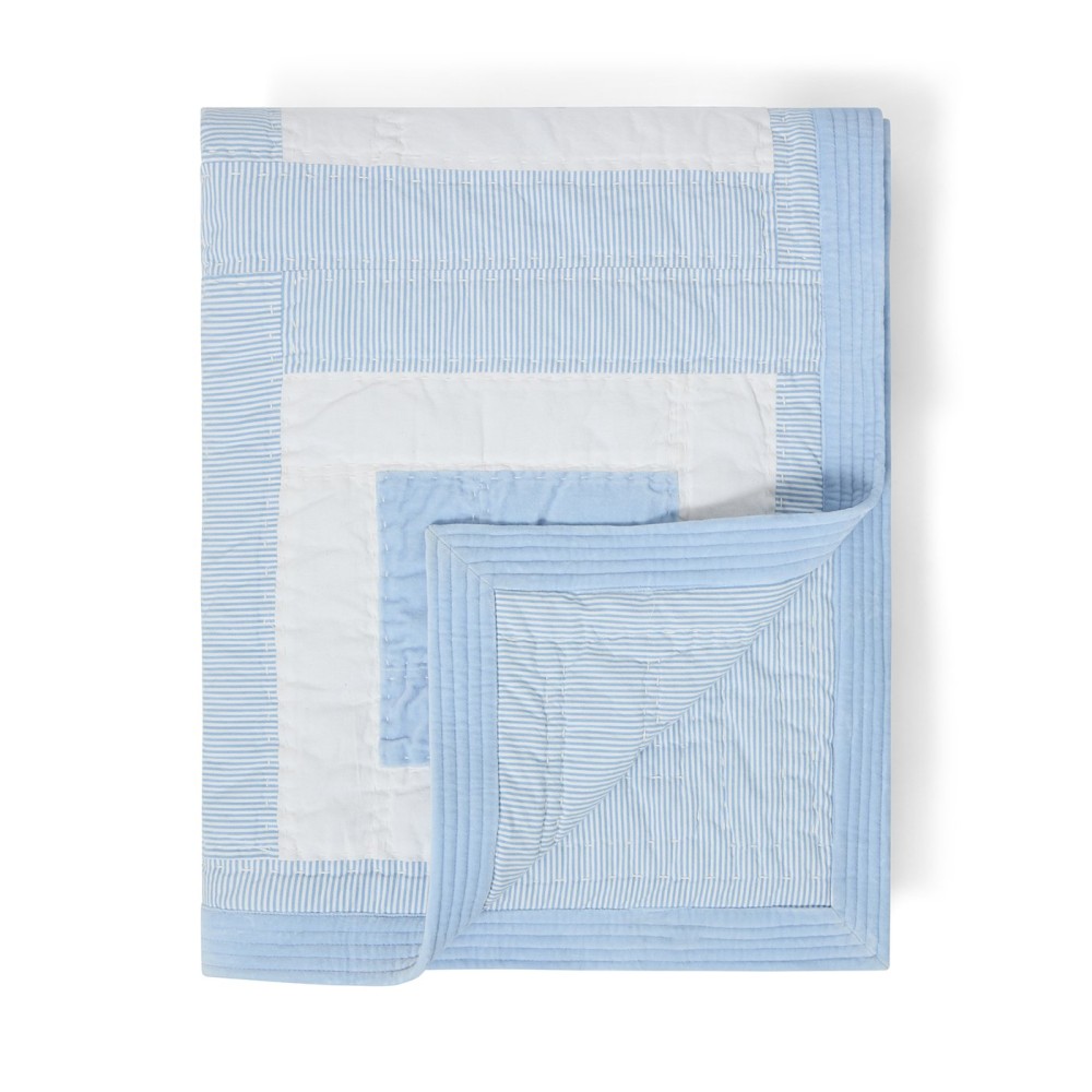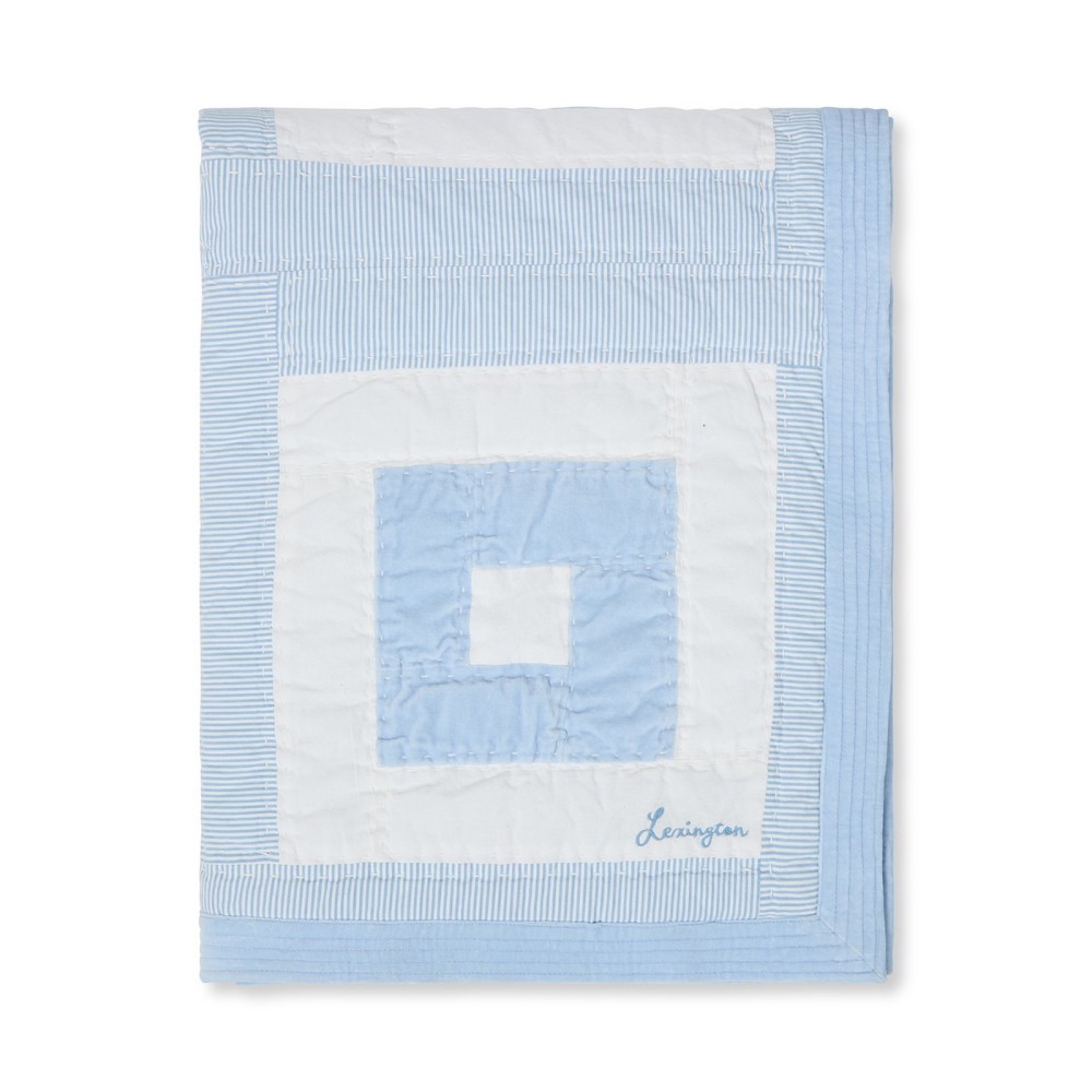 Narzuta Pikowana patchworkowa organiczna bawełniana, niebiesko-biała-12610101-Lexington
