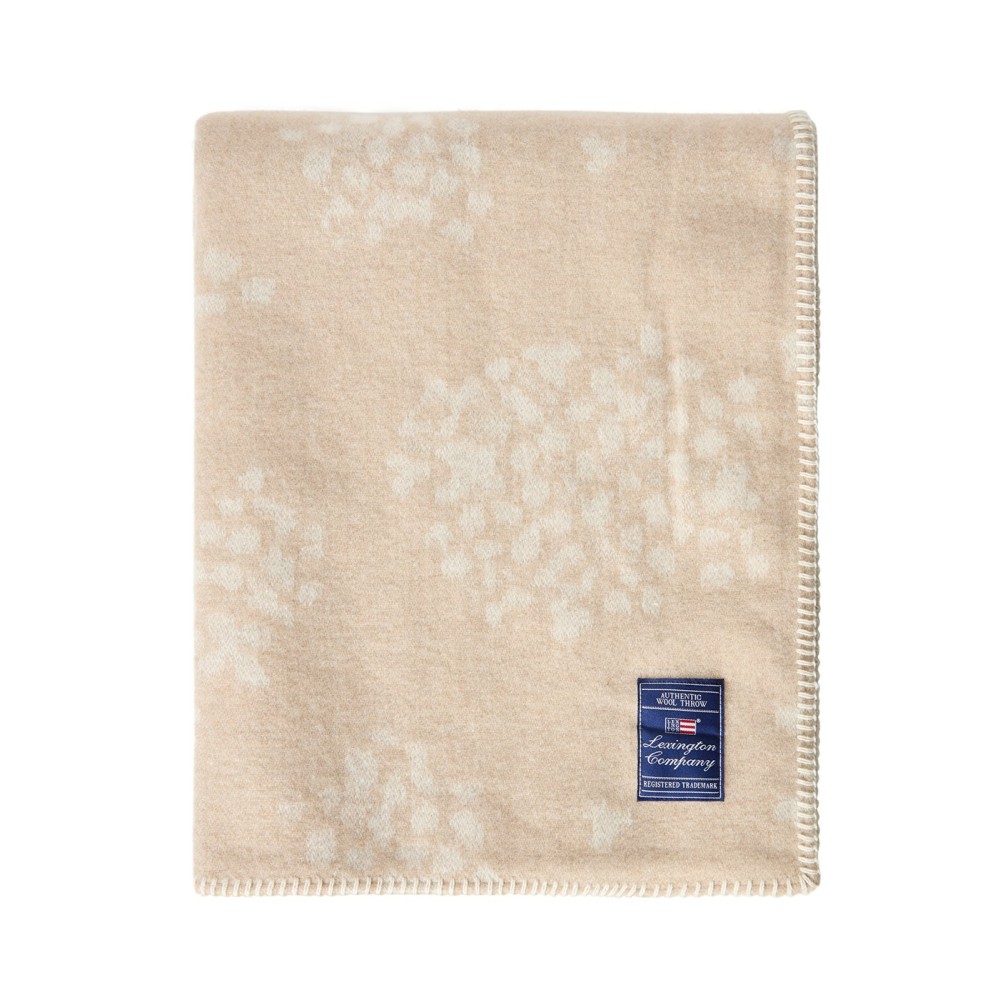 Koc kwiatowy, żakariuszowy wełniany z recyklingu, beżowy-12614002-Lexington