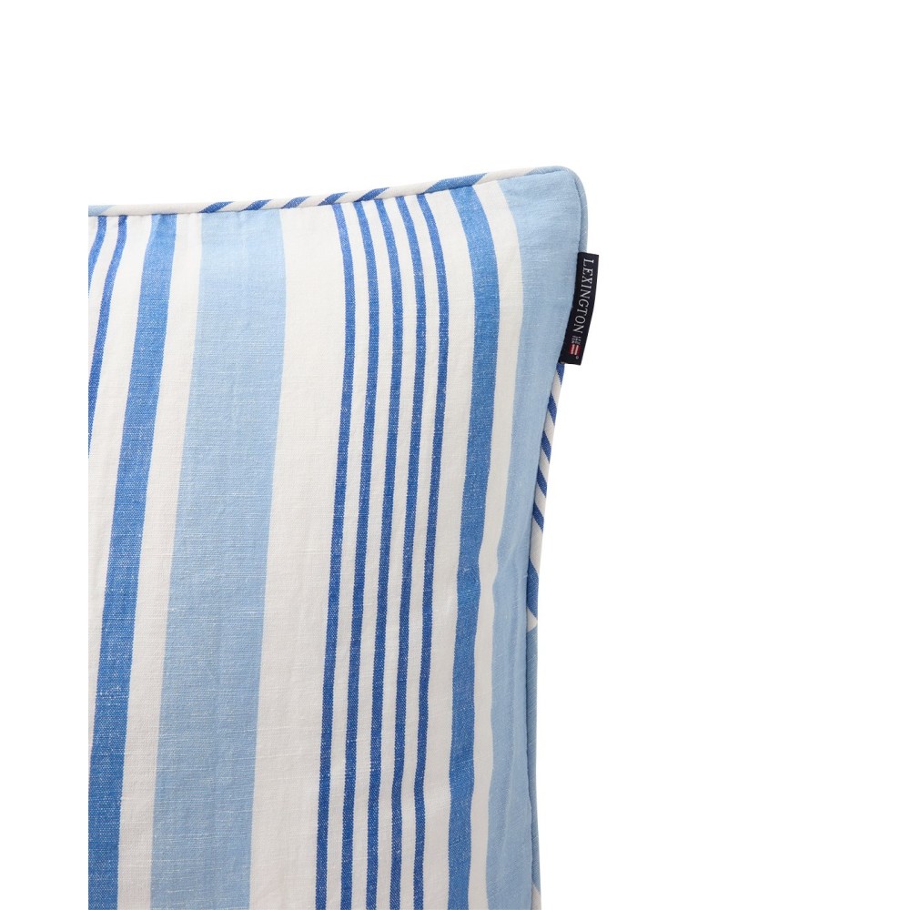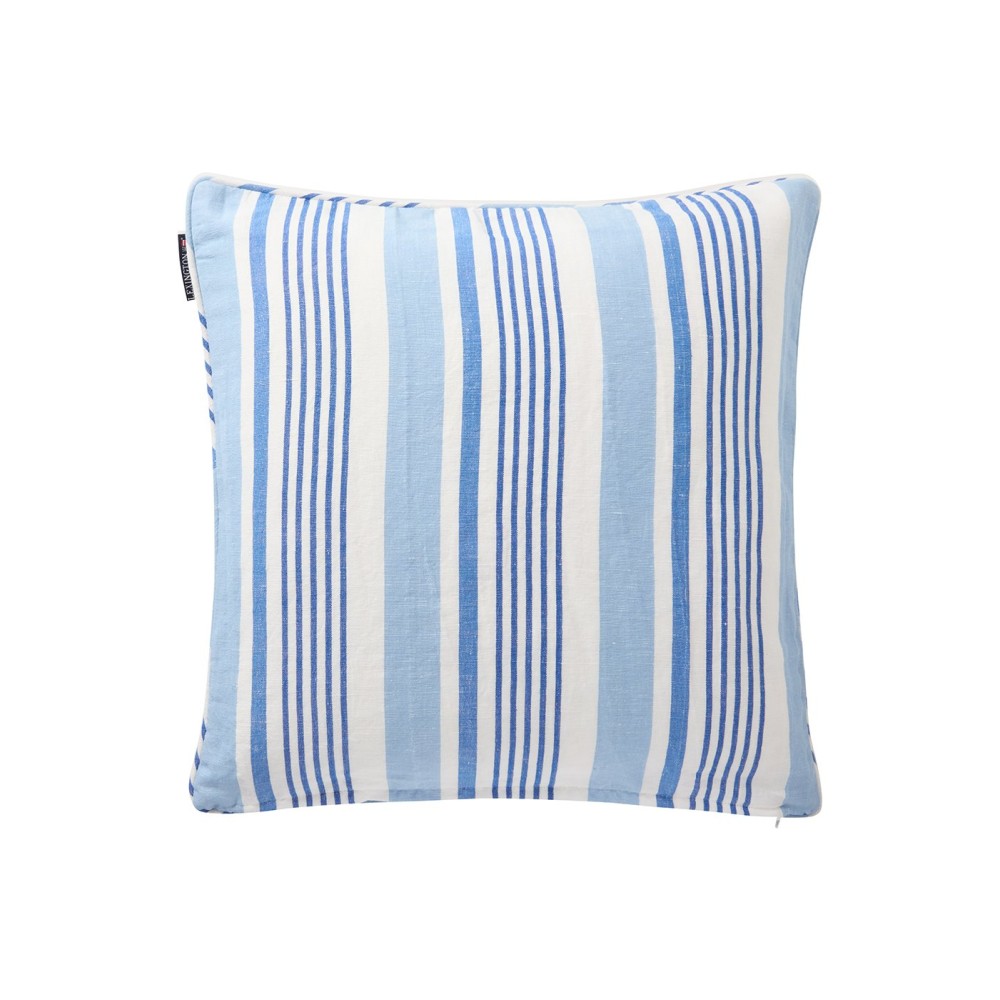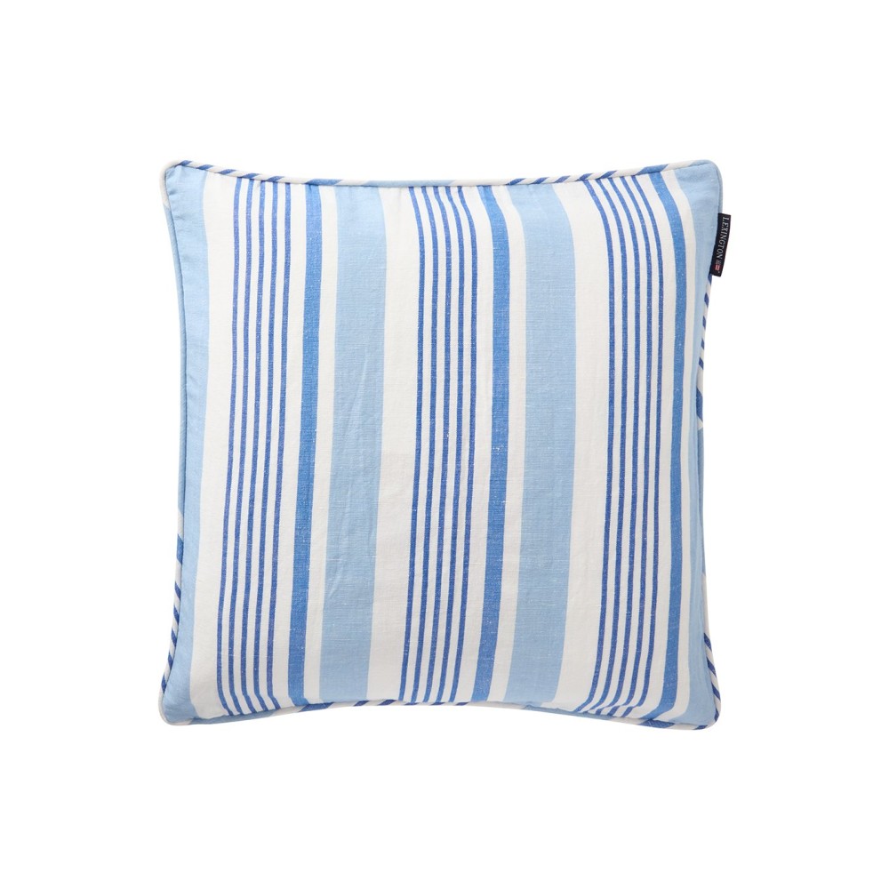 Poszewka dekoracyjna na poduszkę z domieszką lnu w paski, niebieska-12524105-Lexington