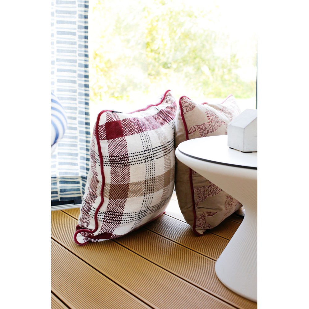 Poszewka dekoracyjna na poduszkę z bawełny pochodzącej z recyklingu w kratę, bordowa-12534109-Lexington