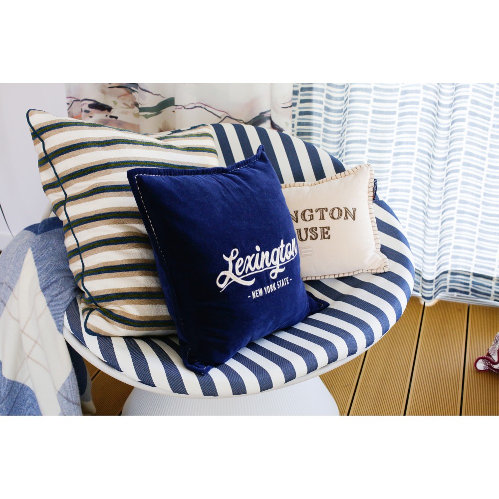 Poszewka dekoracyjna na poduszkę aksamitna z logo z bawełny organicznej, ciemnoniebieska-12534107-Lexington