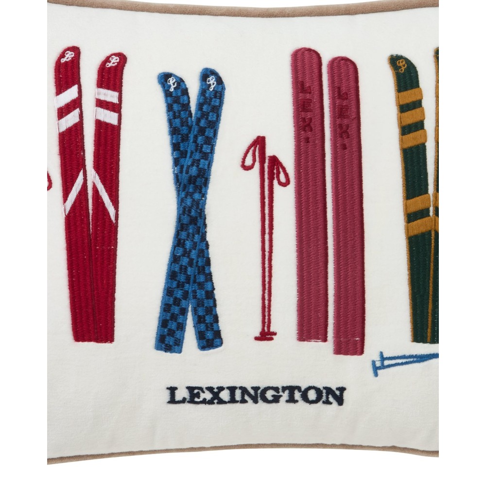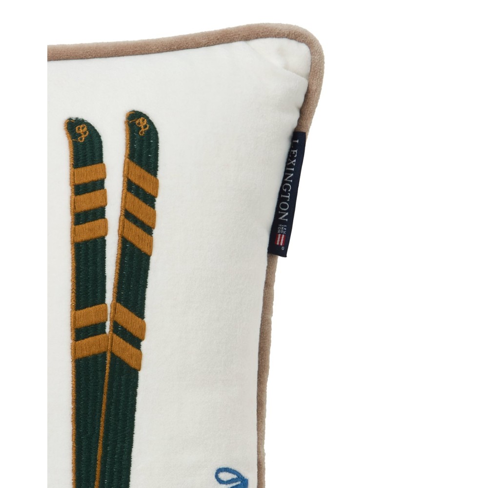 Poduszka dekoracyjna z bawełny organicznej, aksamitna, narty i kijki-40x30-12544103-Lexington