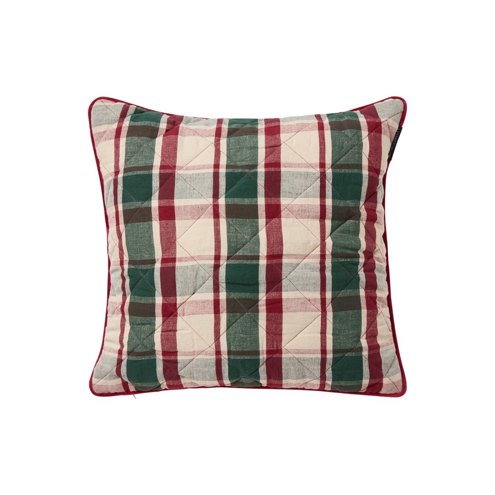 Poszewka dekoracyjna na poduszkę, pikowana z mieszanki lnu w kratę-12544107-Lexington