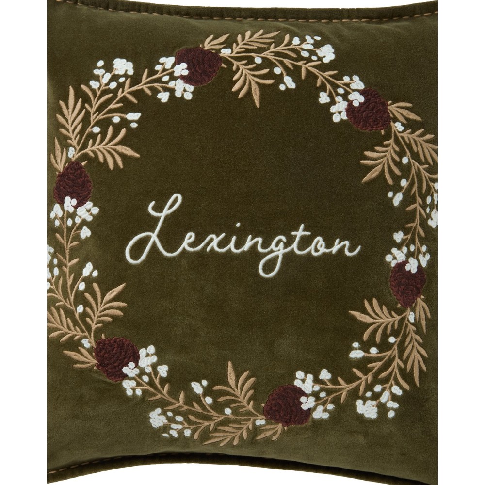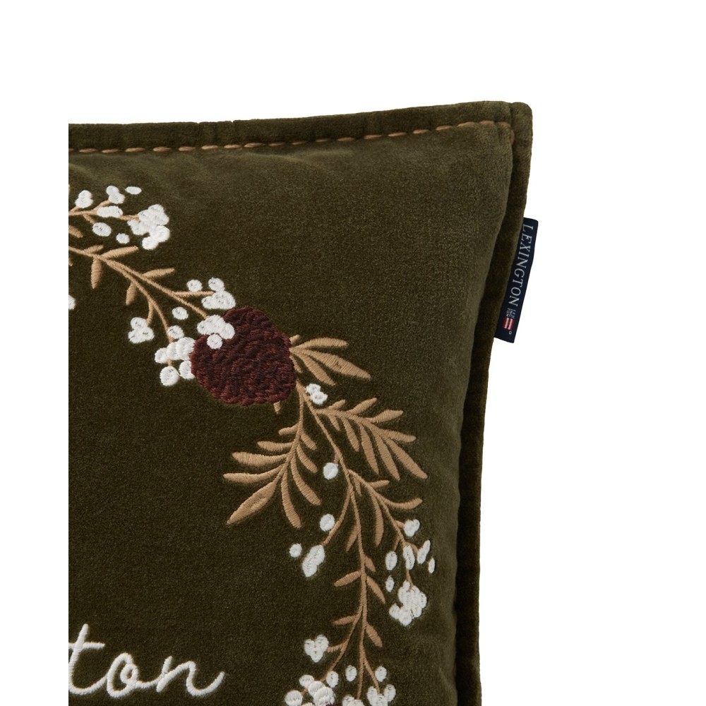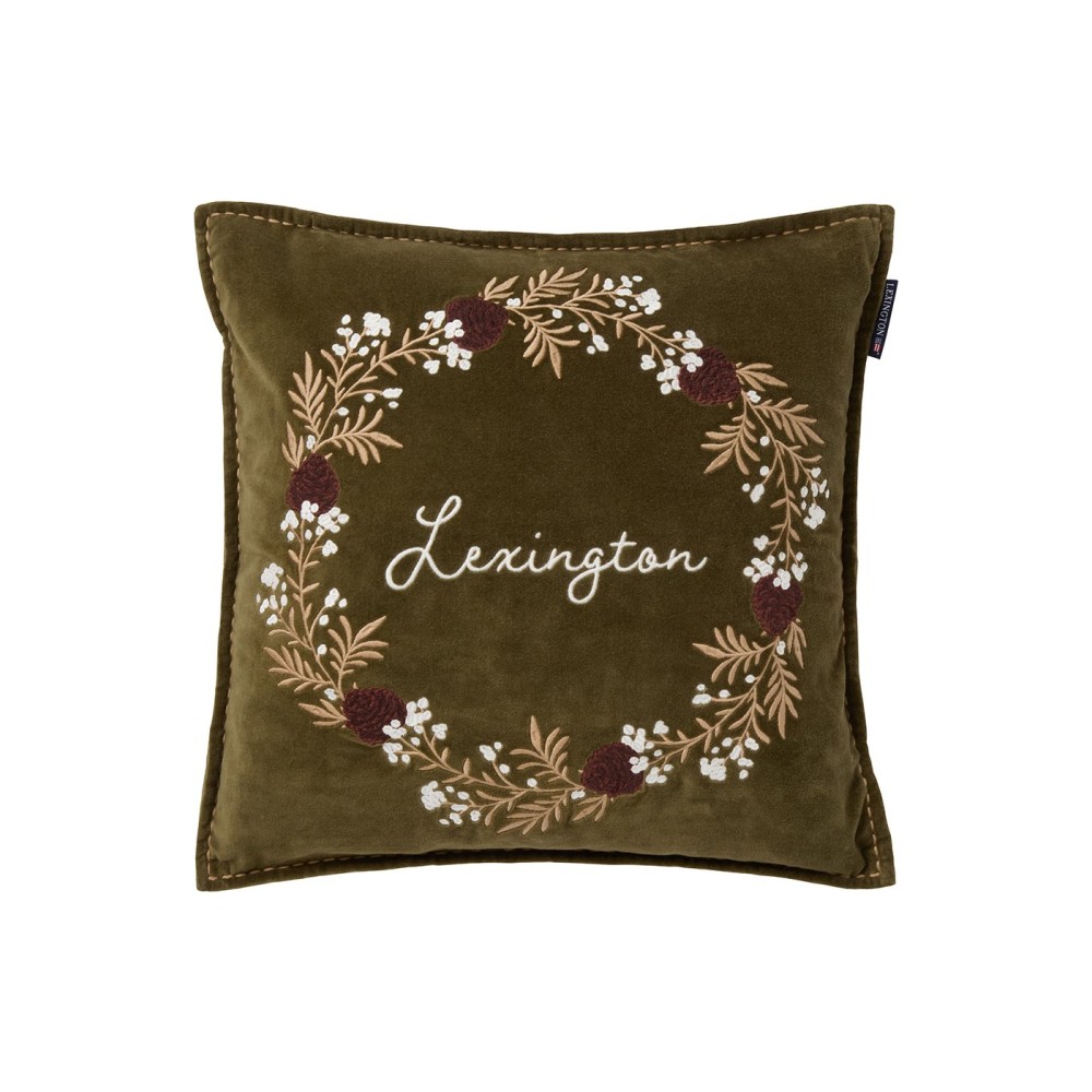Poszewka dekoracyjna-wieniec, aksamitna z bawełny organicznej-12544110-Lexington