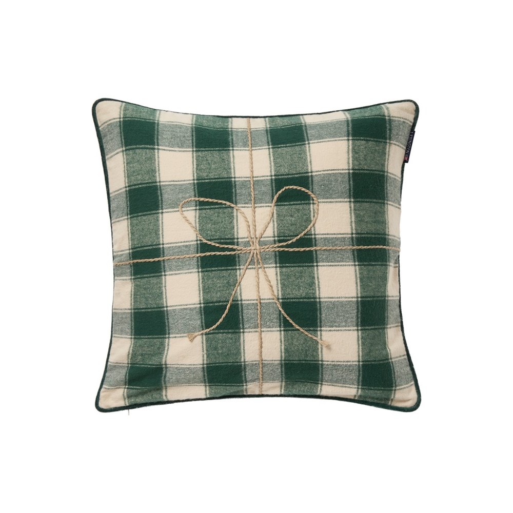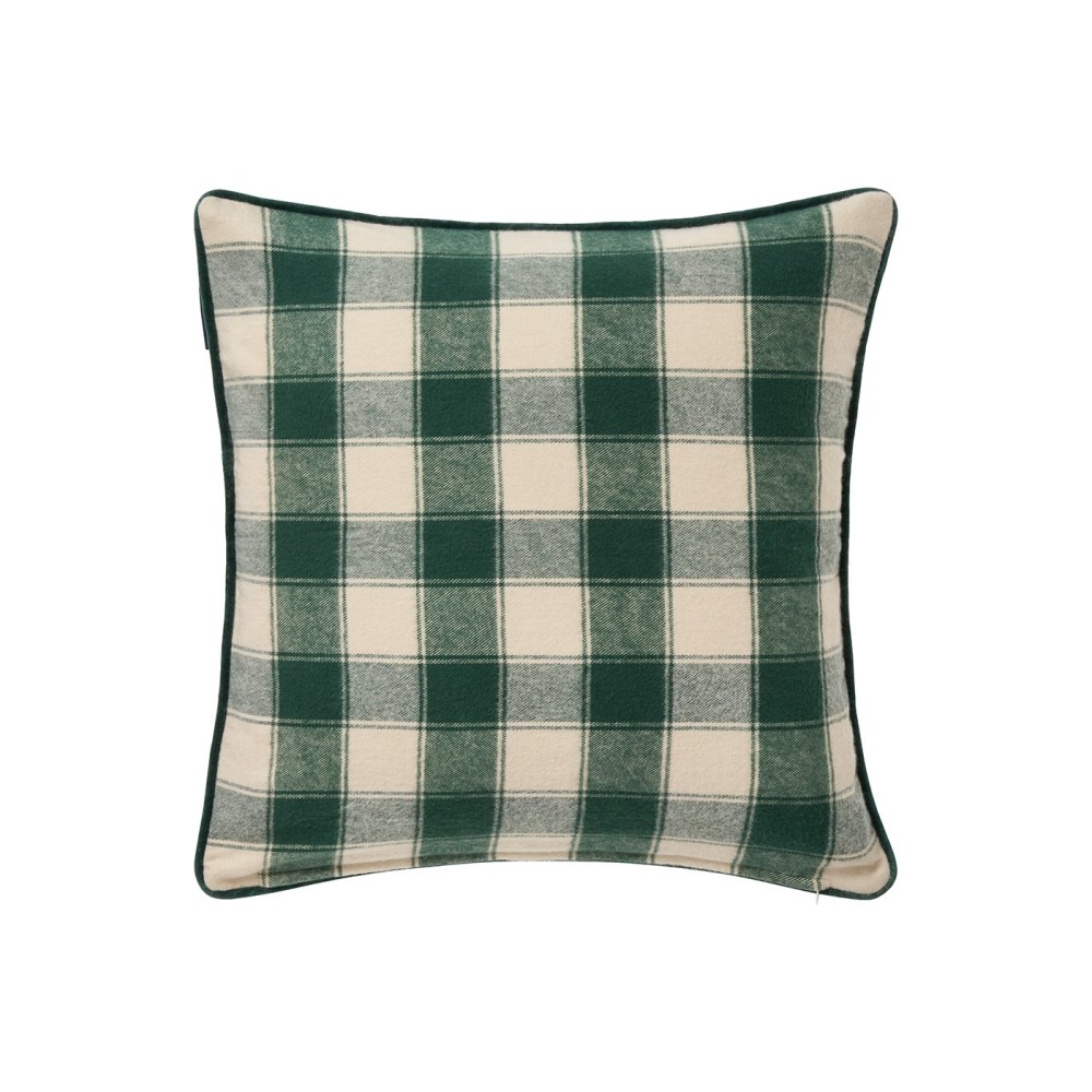 Poszewka dekoracyjna w kratę z organicznej flaneli cove, zielona-12544111-Lexington