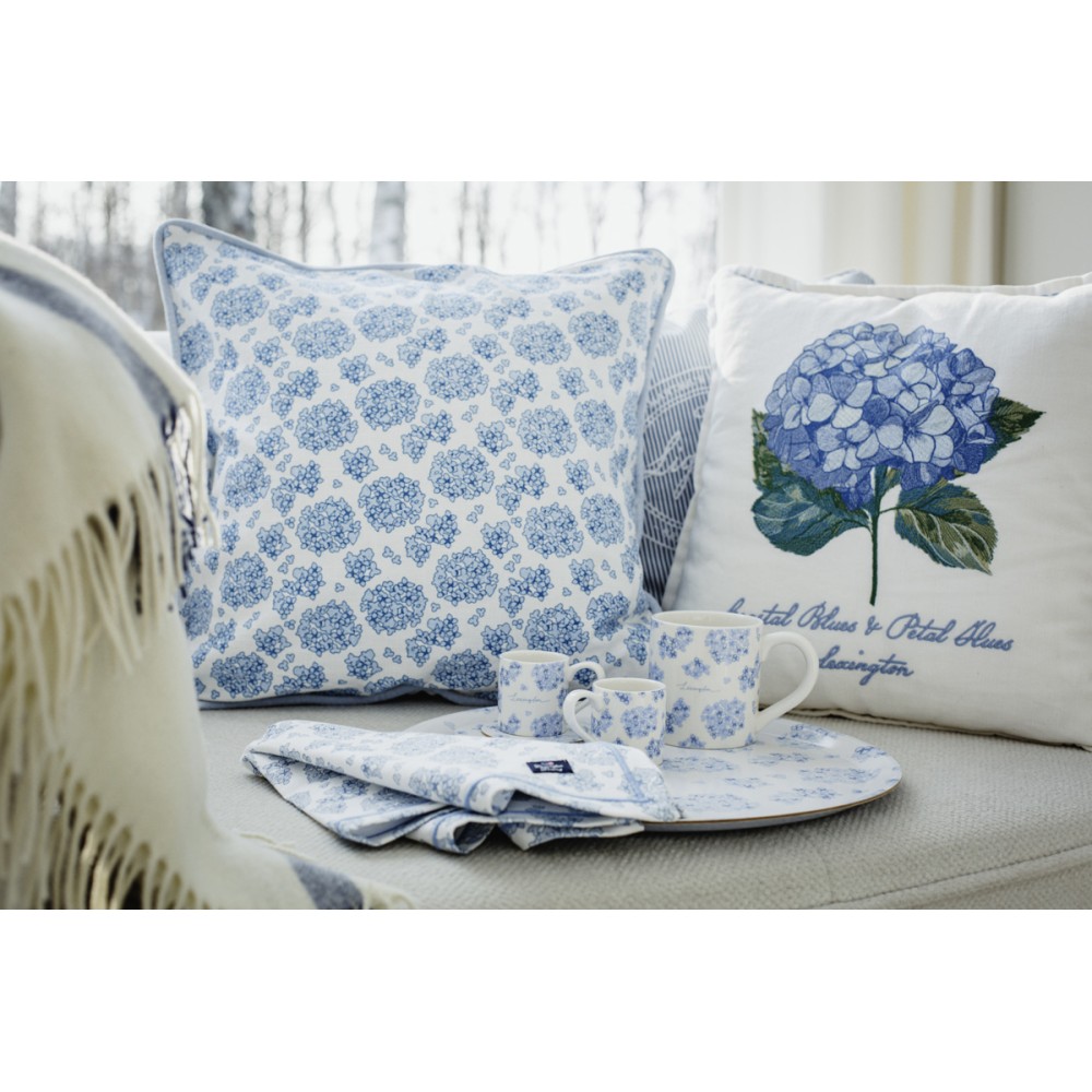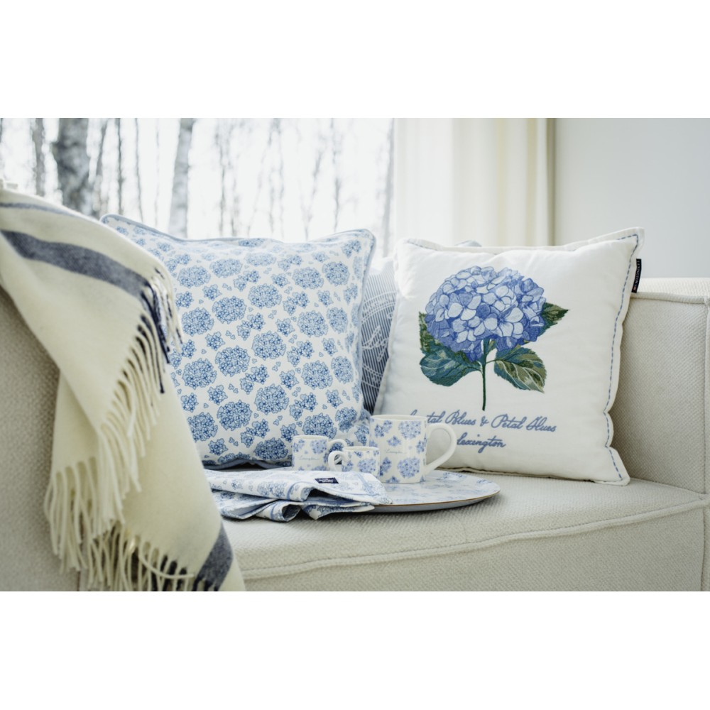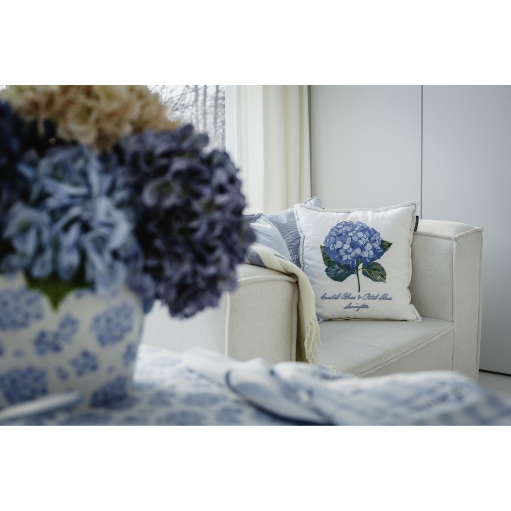 Poszewka dekoracyjna na poduszkę z mieszanką lnu z haftowaną kwiatową tkaniną, niebieska-12614112-Lexington