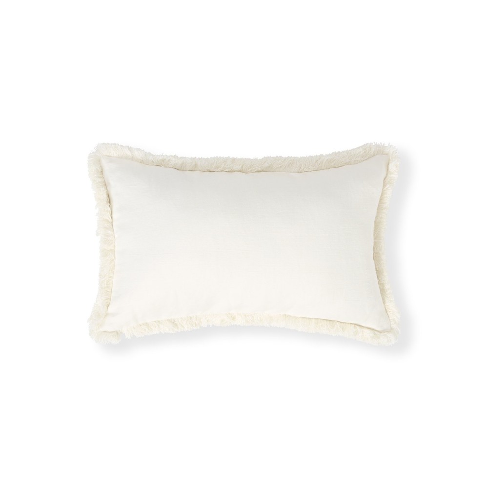Poduszka dekoracyjna z mieszanką białego lnu z frędzli, 30x50-12614108-Lexington