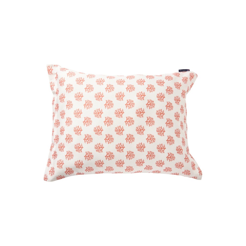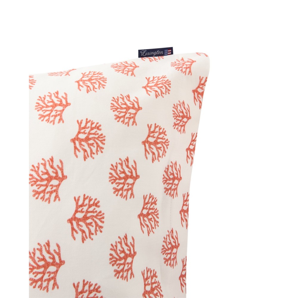 Poszewka na poduszkę z satyny bawełnianej z nadrukiem, biały/koralowy-12520012-Lexington