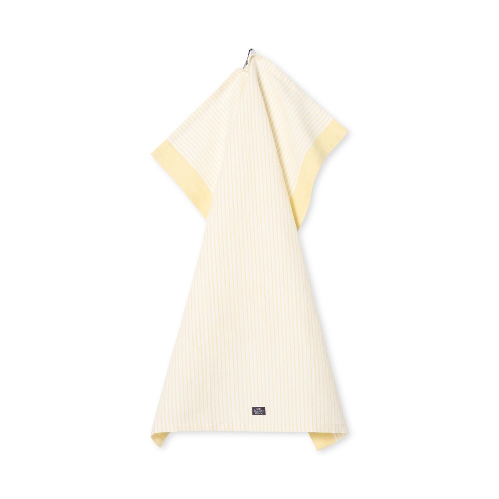 Ręcznik kuchenny z mieszanką lnu w paski, żółto-biały-12613007-Lexington