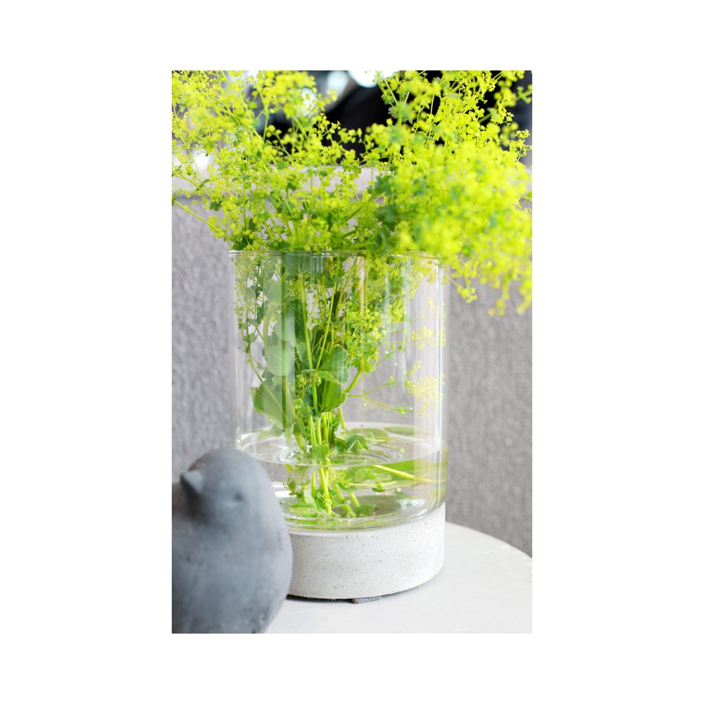 Lampion Torre-szklany cylinder z betonową podstawą