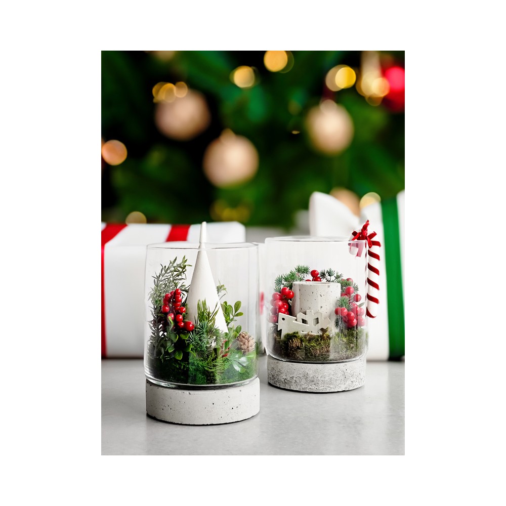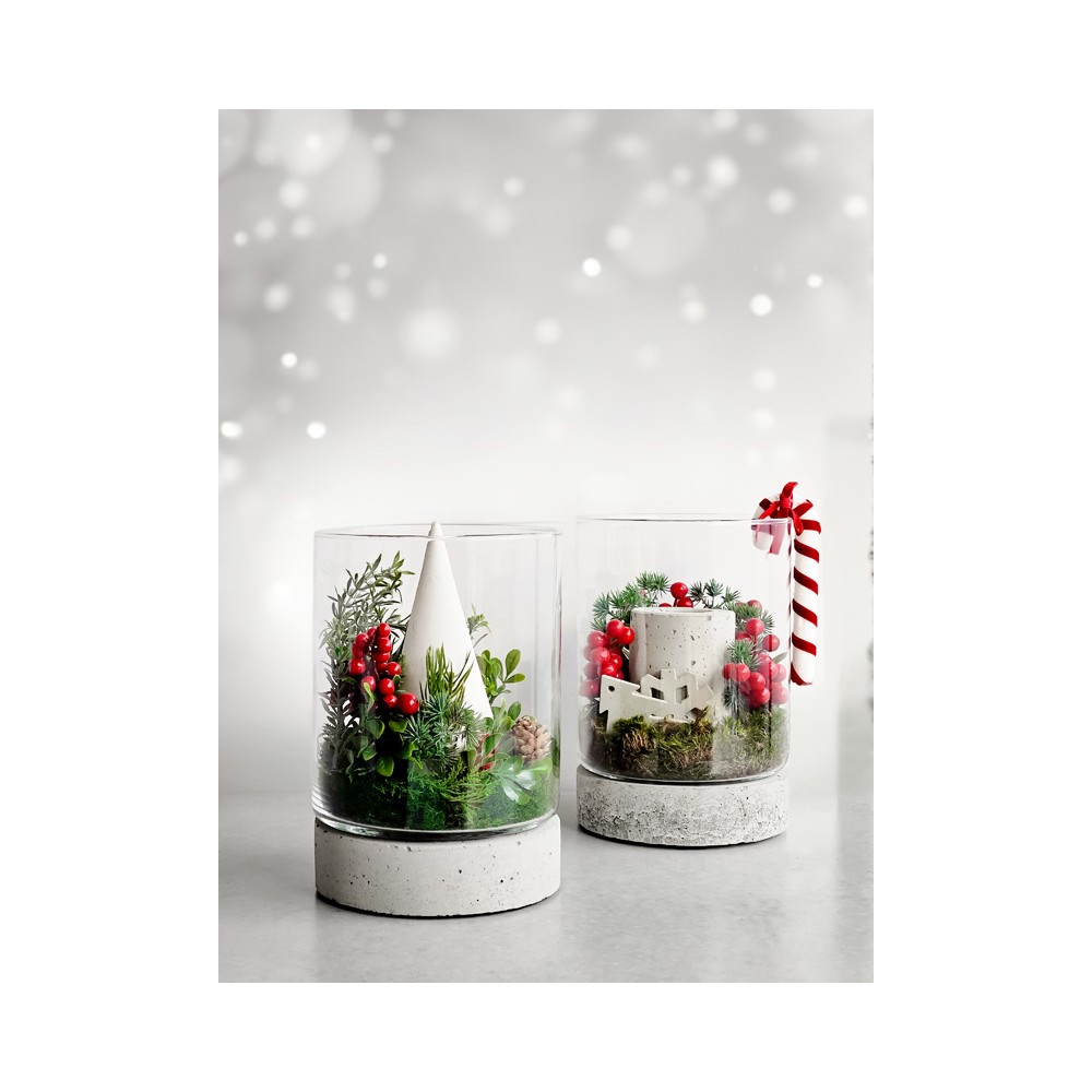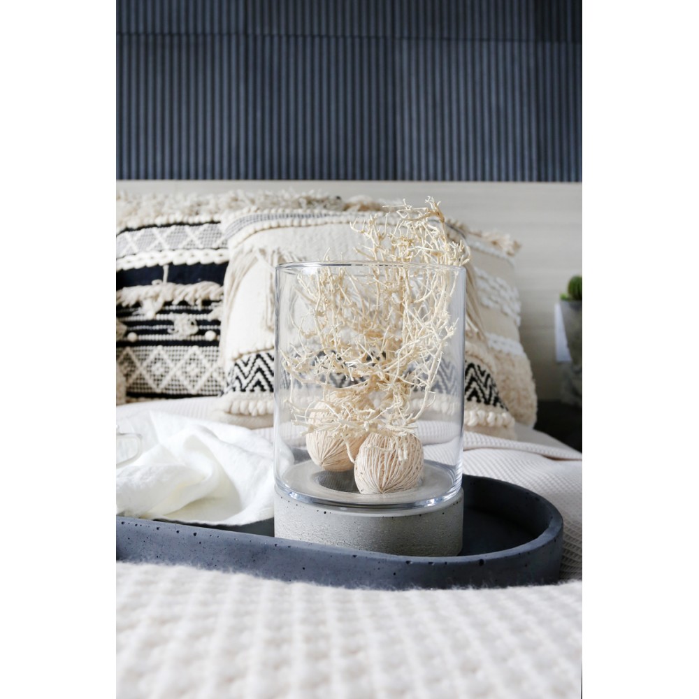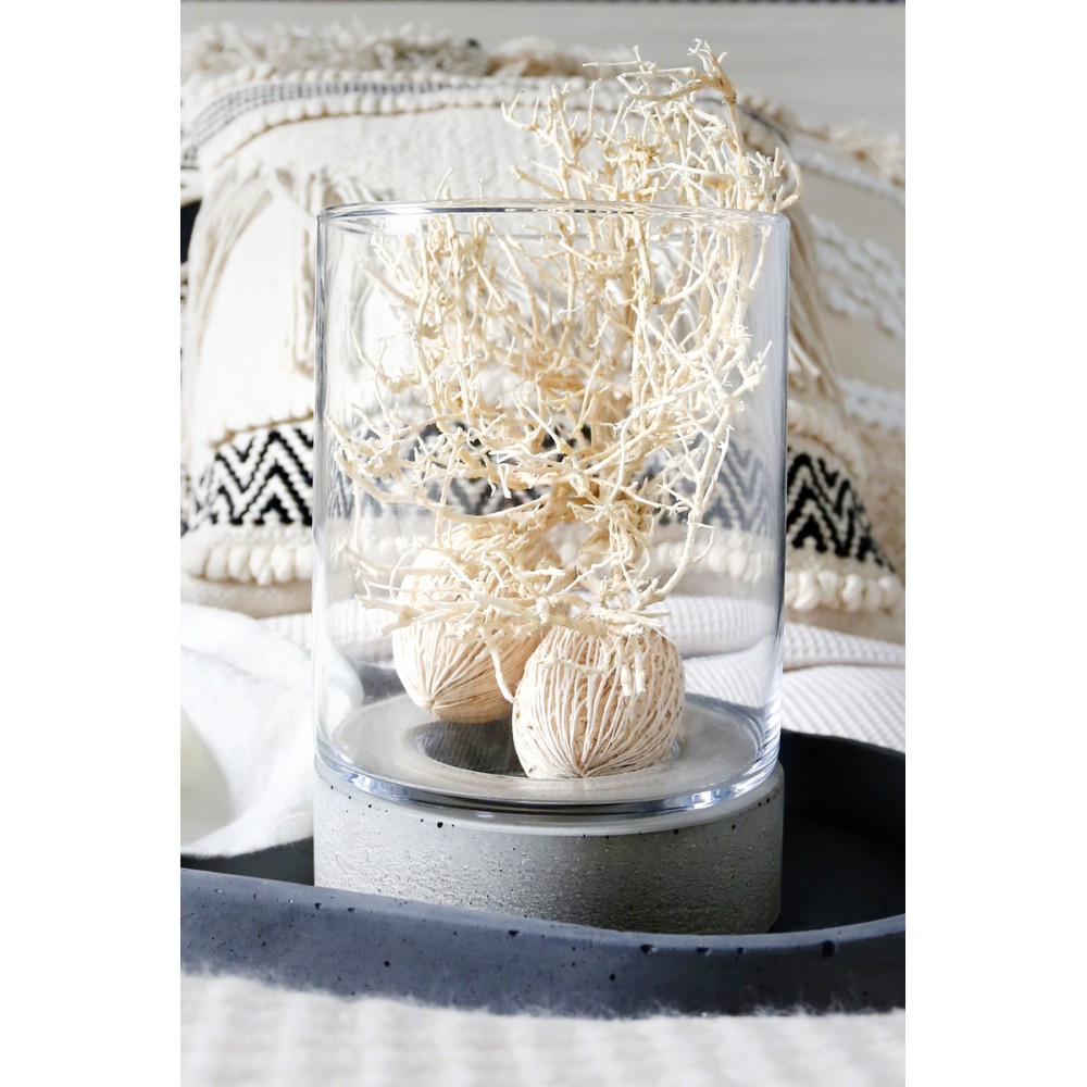 Słój Torre szklany cylinder z betonową podstawą to produkt, który ma szerokie zastosowanie. Może on posłużyć zarówno jako donica, jaki i świeczki czy nawet wazon z kwiatami. Stwórz idealną kompozycję, dodając do słoja figurki bądź ozdoby.