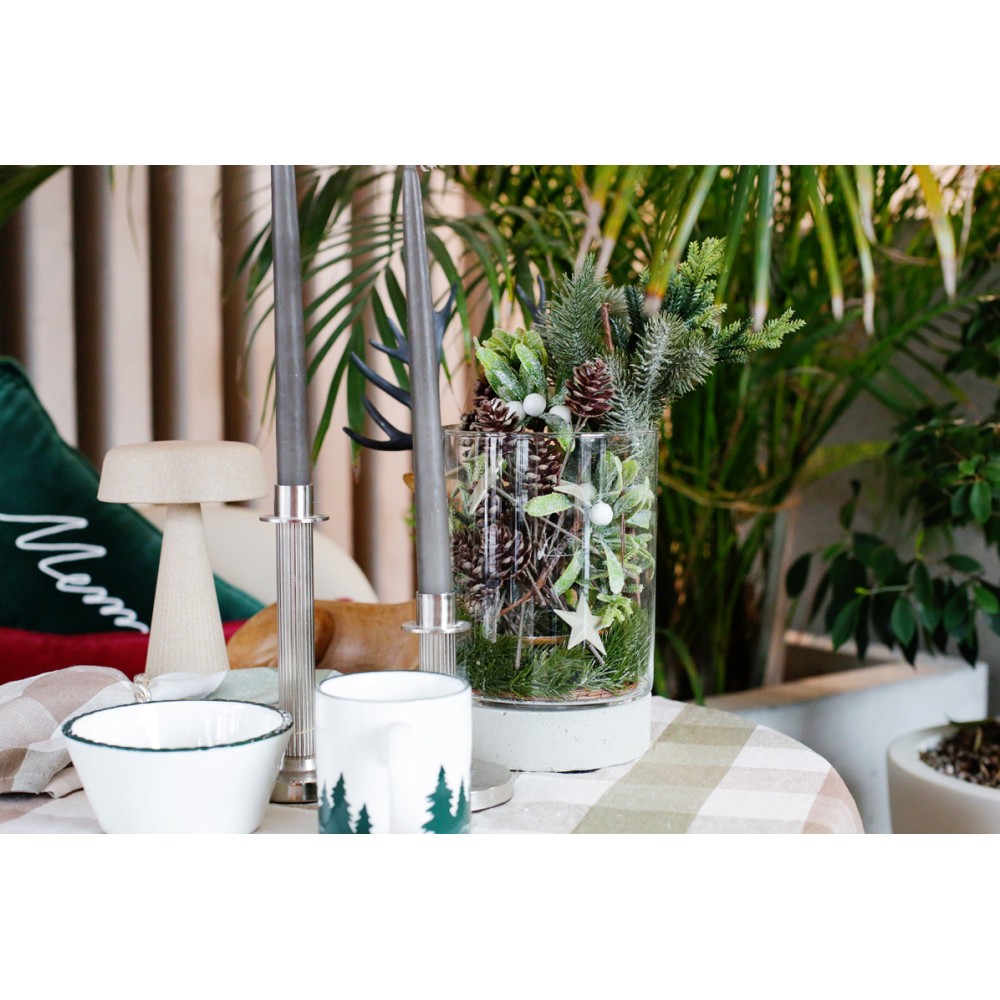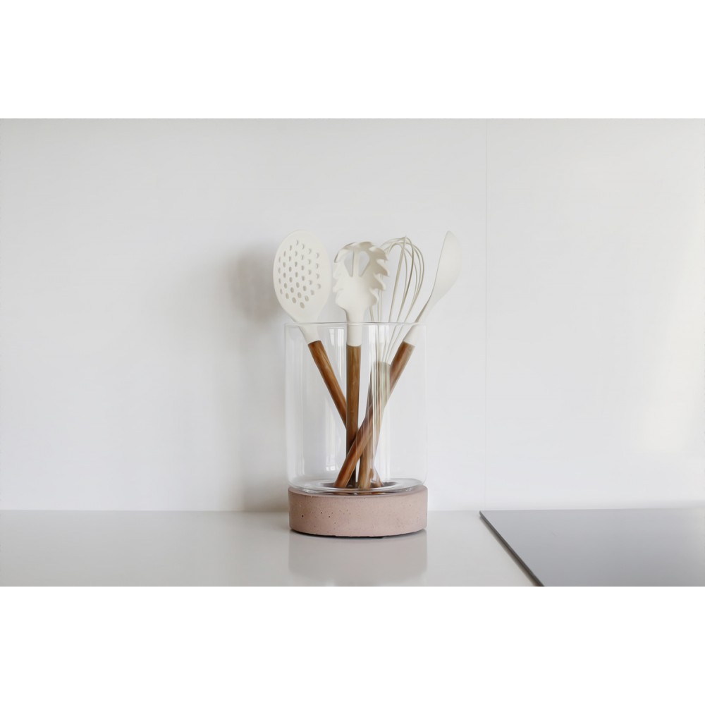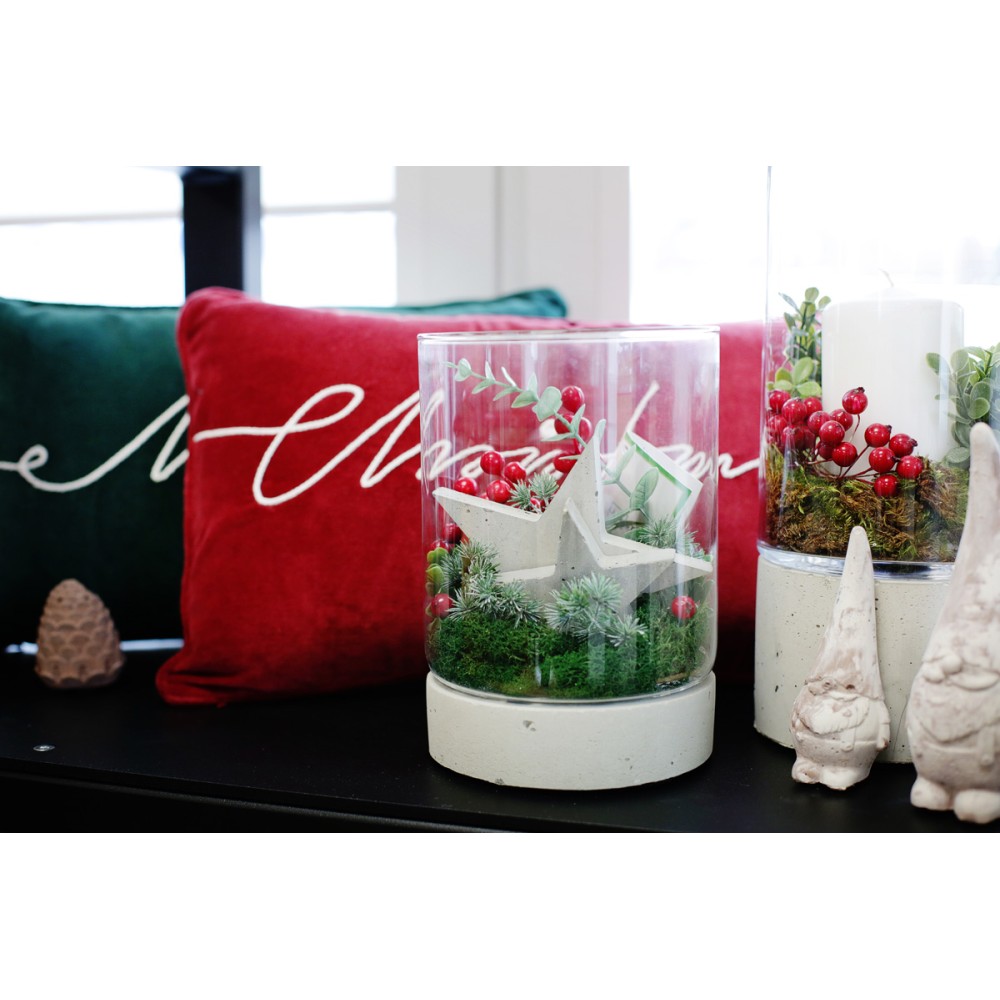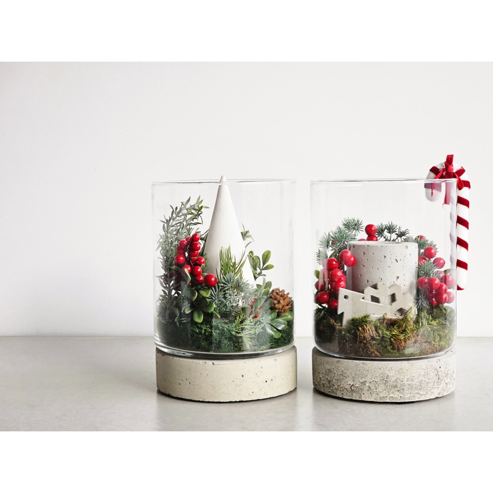 Słój Torre szklany cylinder z betonową podstawą to produkt, który ma szerokie zastosowanie. Może on posłużyć zarówno jako donica, jaki i świeczki czy nawet wazon z kwiatami. Stwórz idealną kompozycję, dodając do słoja figurki bądź ozdoby.