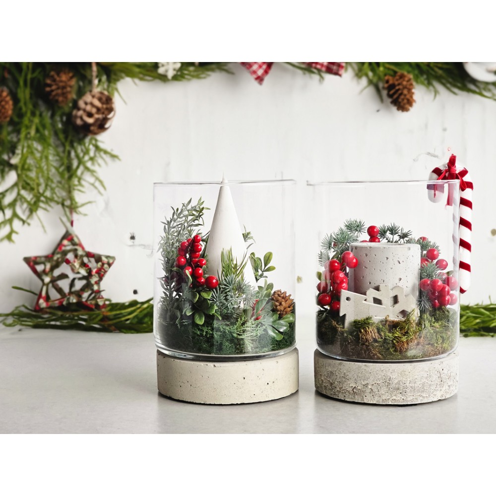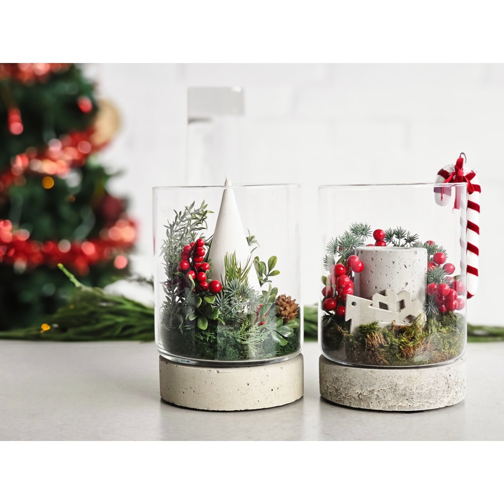 Podstawa betonowa plus słój szklany to ozdoba o wielu zastosowaniach. Posłuży jako podstawa pod donice, świeczki czy wazon z kwiatami.