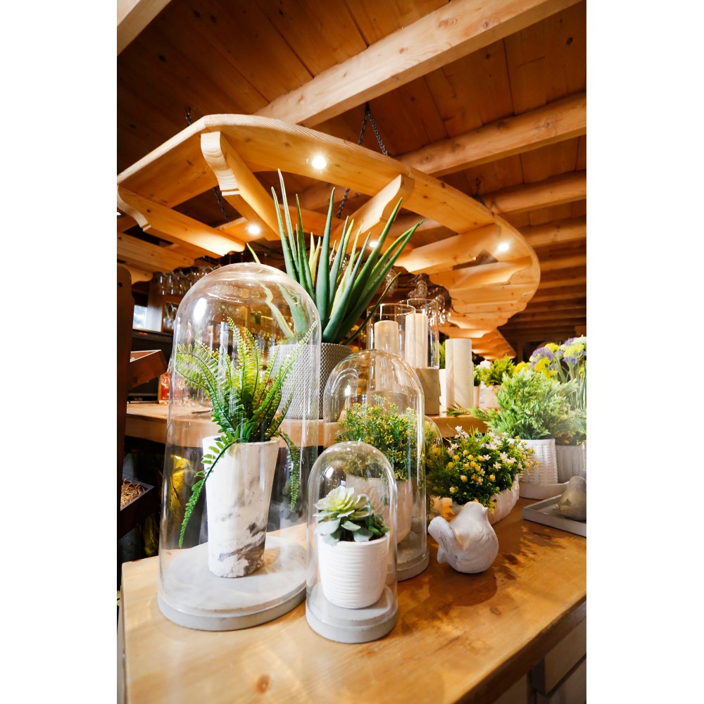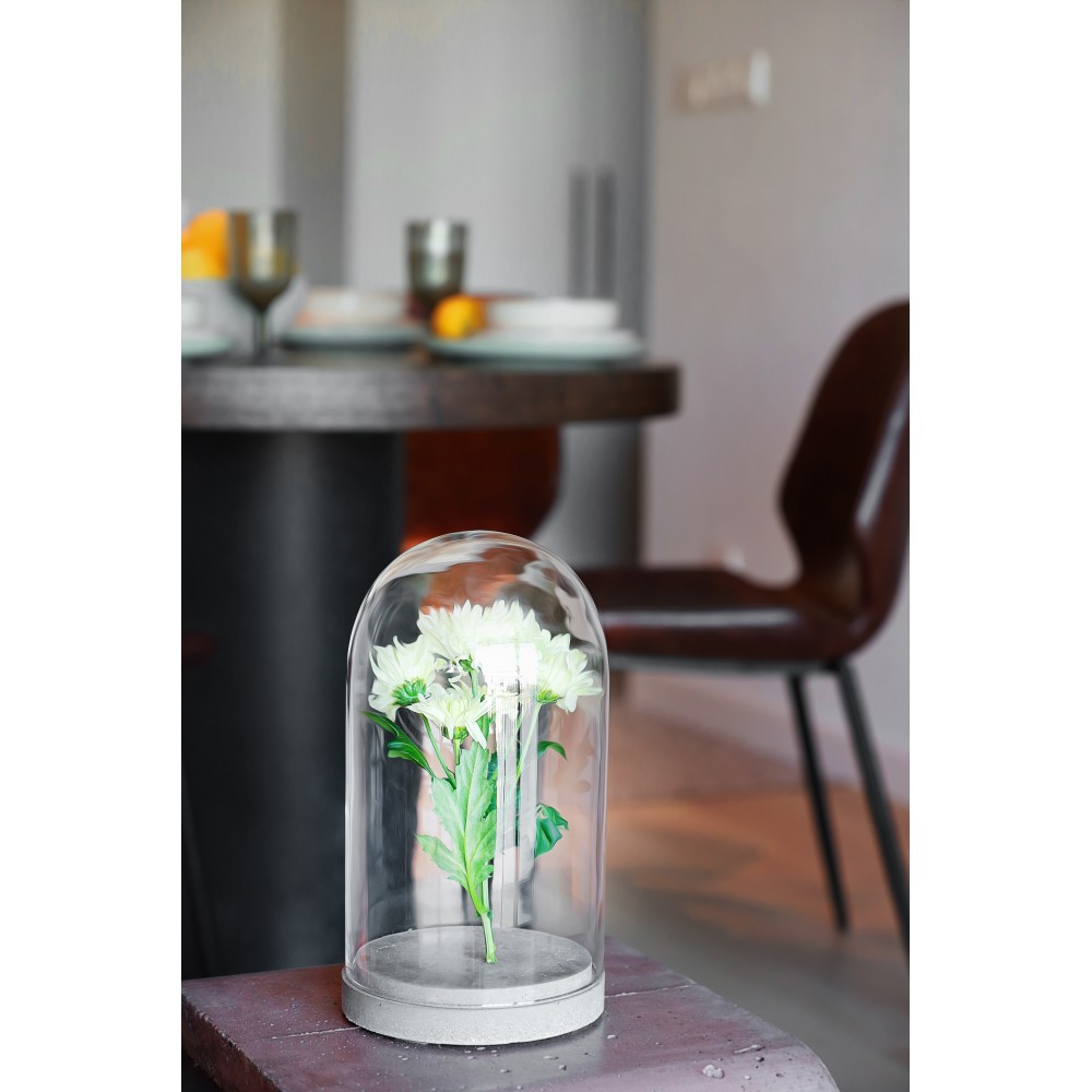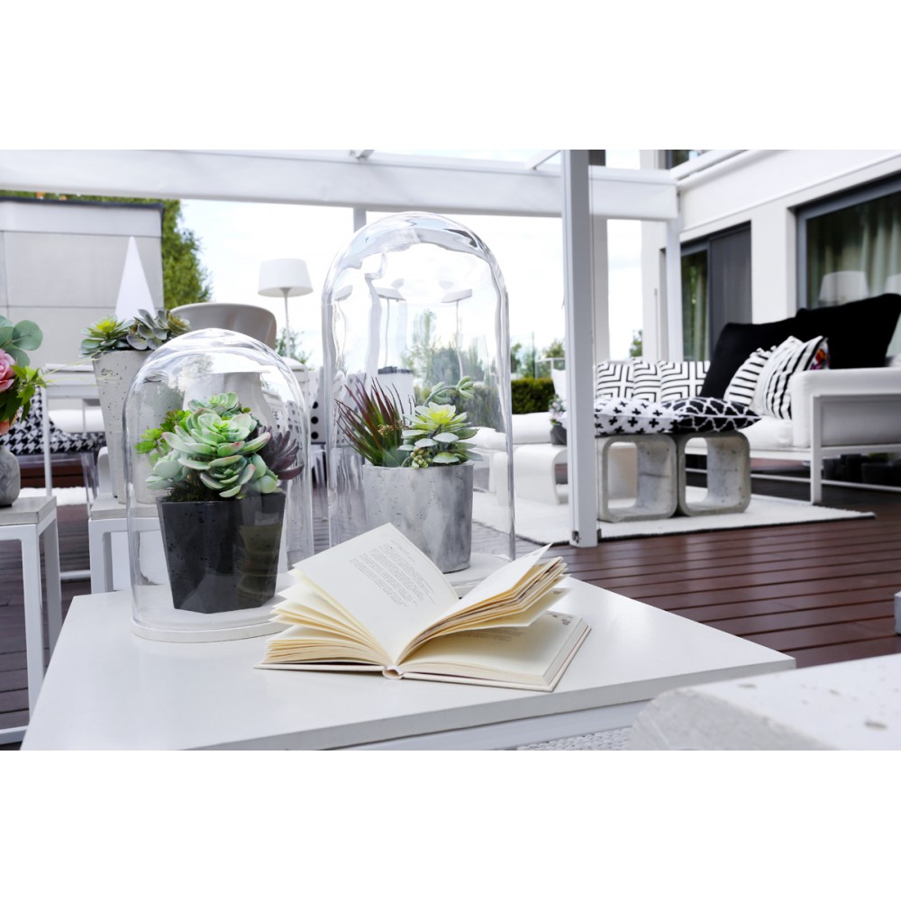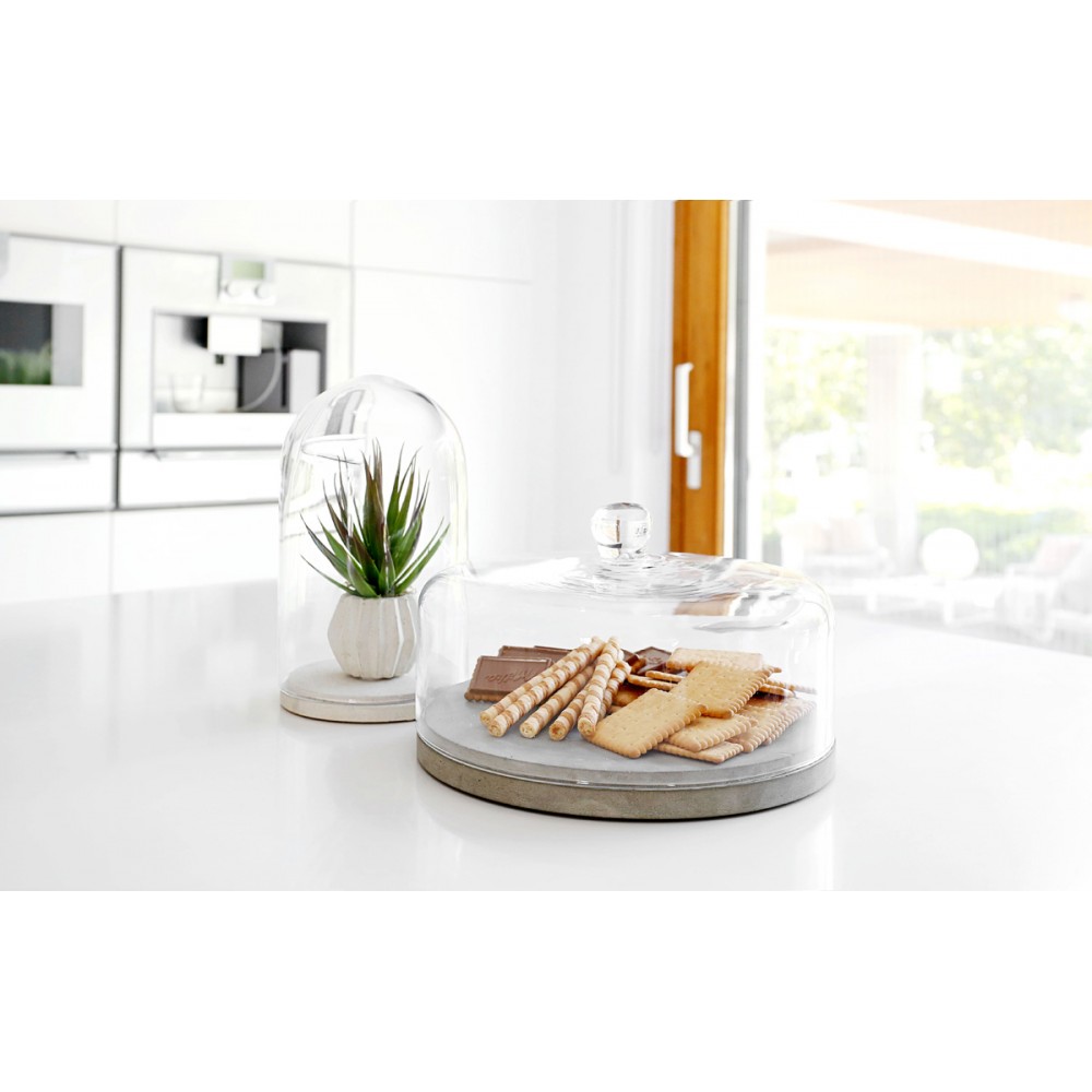 Szklany klosz to bardzo ciekawy element dekoracyjny, który idealnie sprawdzi się do wyeksponowania zarówno sztucznych, jak i żywych roślin. Z kolei dzięki wykorzystaniu podstawy z betonu architektonicznego z powodzeniem można go również wykorzystać w formie tacy, która posłuży nam do serwowania owoców lub słodkości.