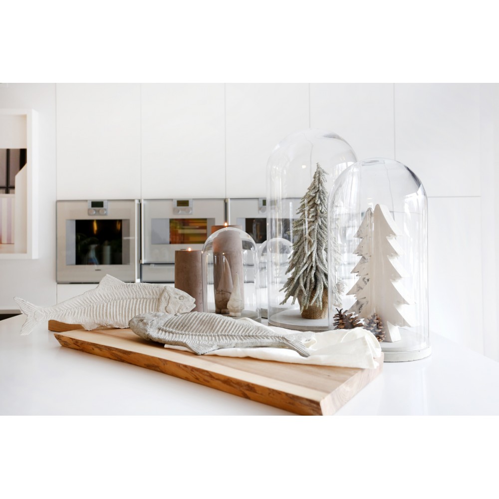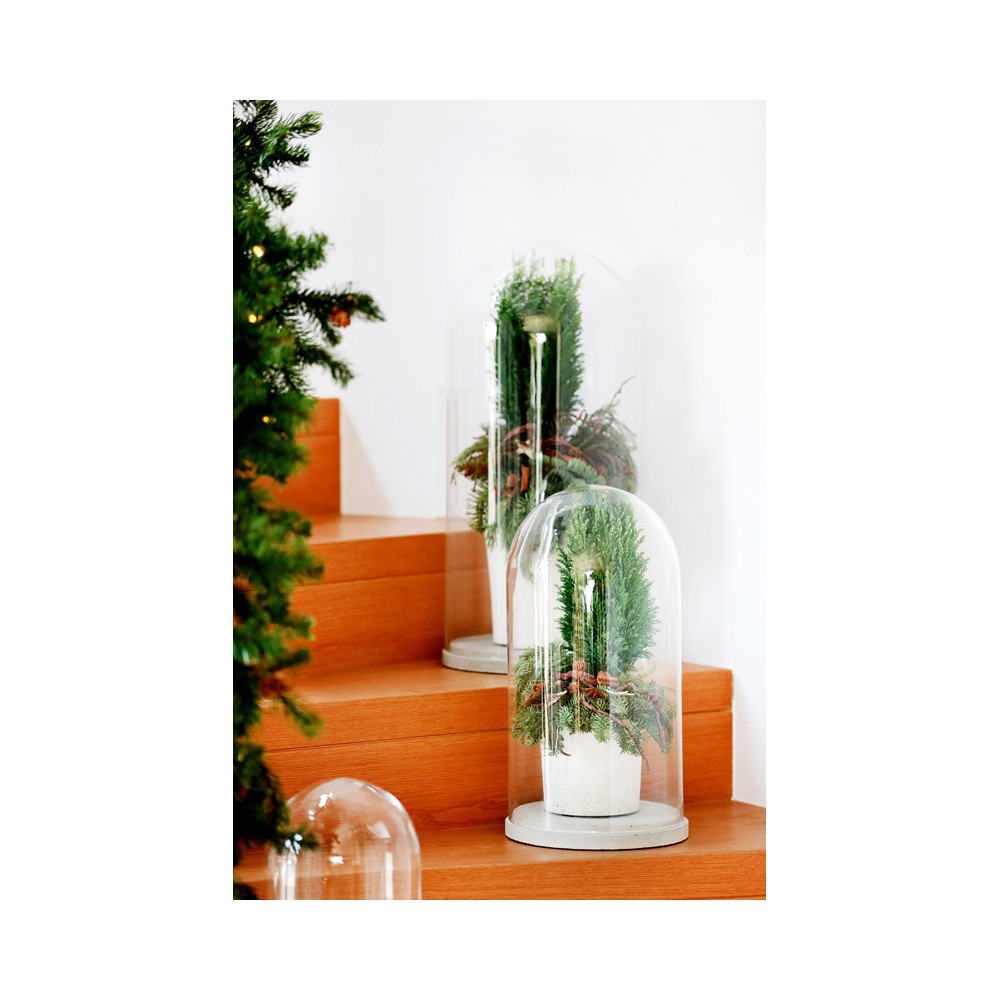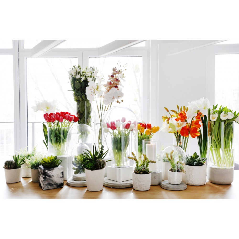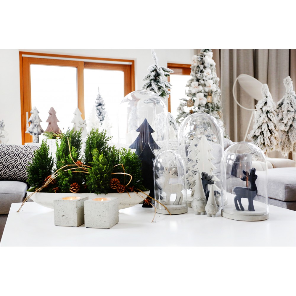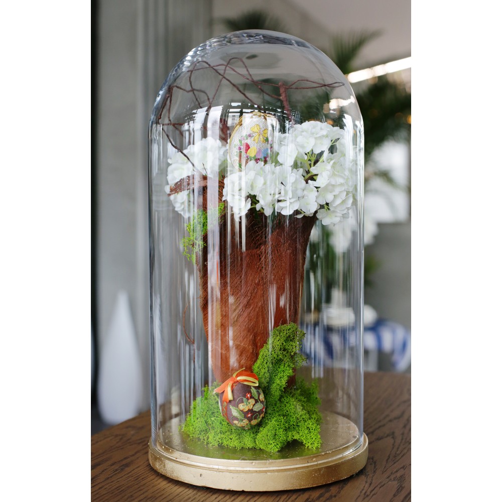 Szklany klosz to bardzo ciekawy element dekoracyjny, który idealnie sprawdzi się do wyeksponowania zarówno sztucznych, jak i żywych roślin. Z kolei dzięki wykorzystaniu podstawy z betonu architektonicznego z powodzeniem można go również wykorzystać w formie tacy, która posłuży nam do serwowania owoców lub słodkości.