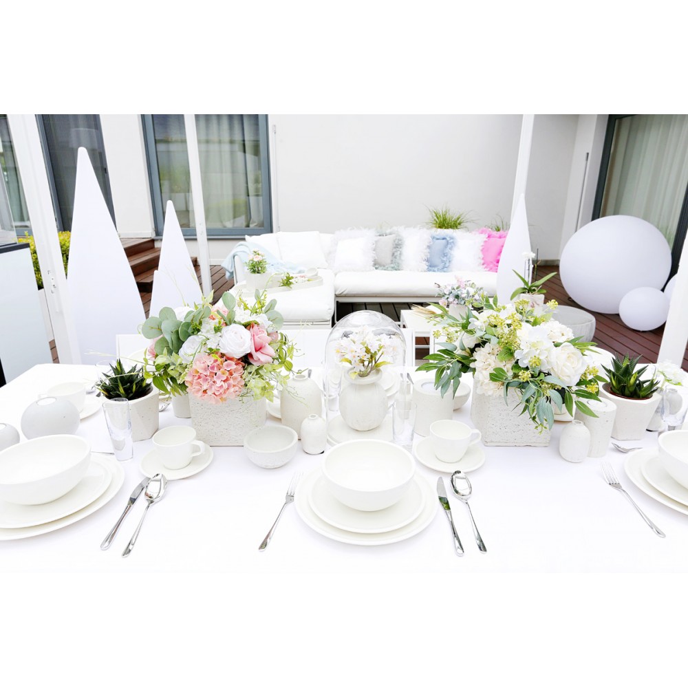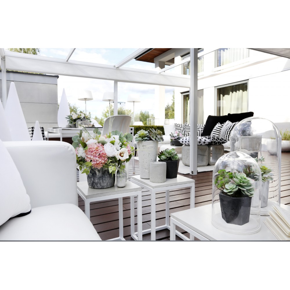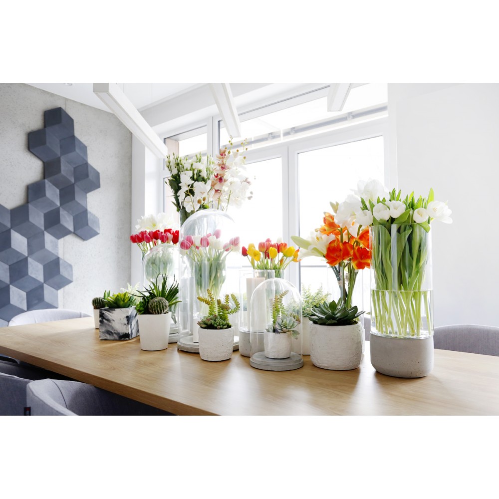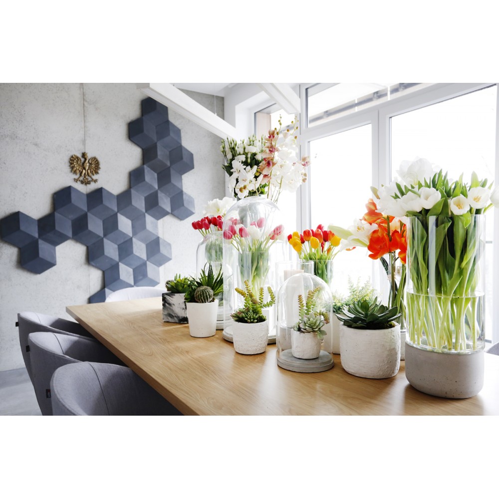 Przepiękny element dekoracyjny. Idealny do eksponowania żywych lub sztucznych roślin. Podstawa z betonu architektonicznego doskonale sprawdzi się jako taca do serwowania owoców czy słodkości.