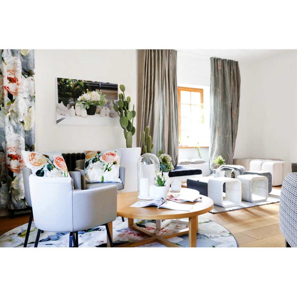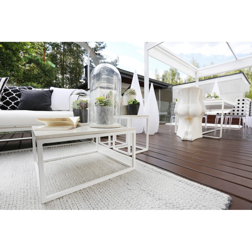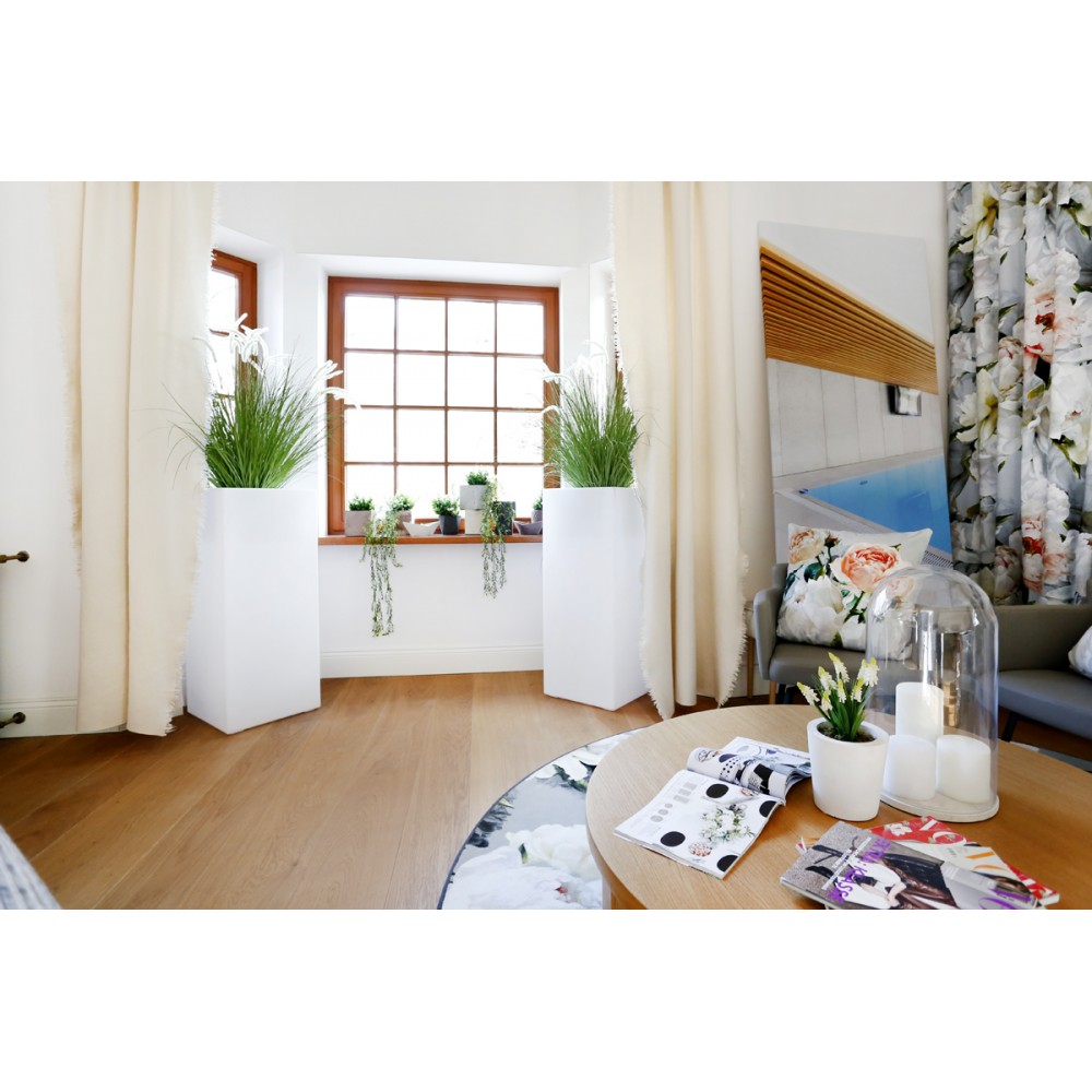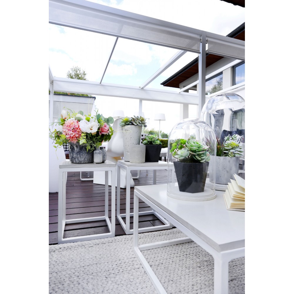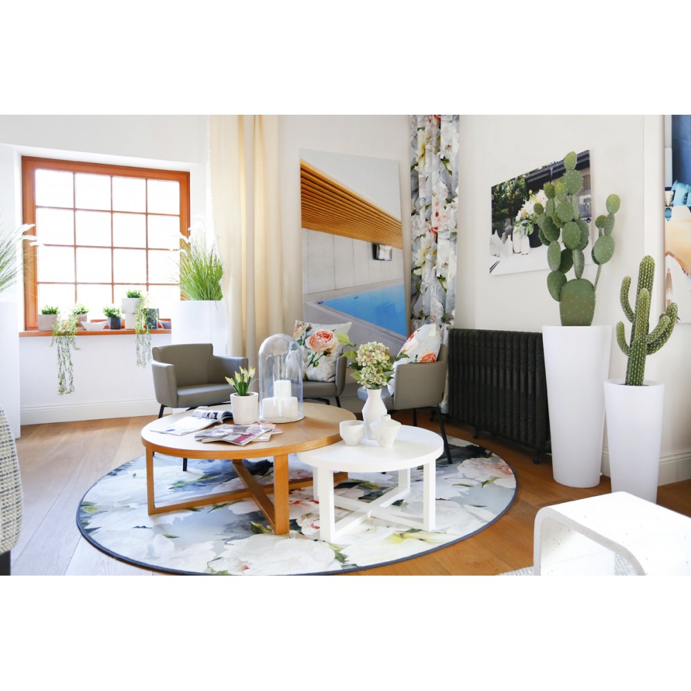 Przepiękny element dekoracyjny. Idealny do eksponowania żywych lub sztucznych roślin. Podstawa z betonu architektonicznego doskonale sprawdzi się jako taca do serwowania owoców czy słodkości.