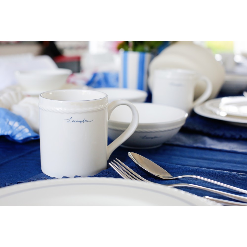 Kubek porcelanowy, biały/niebieski-10008110-Lexington