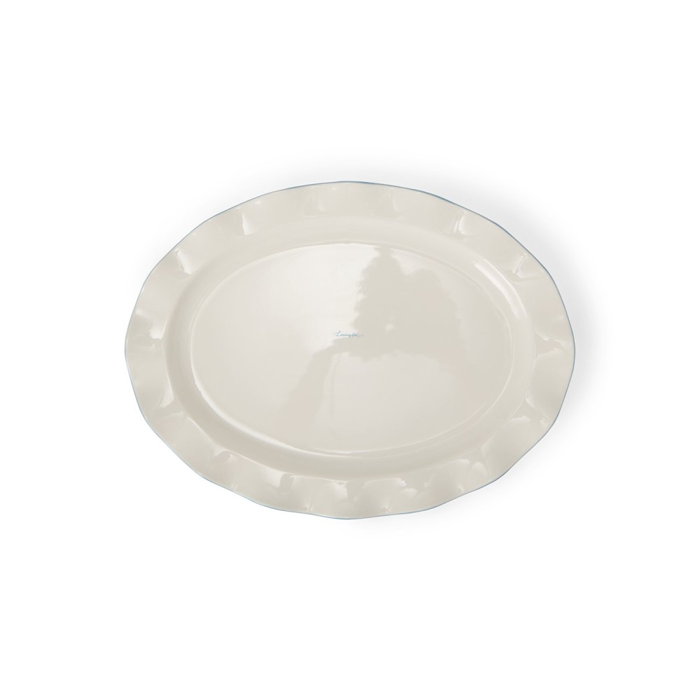 Talerz/Półmisek-Falisty owalny z kamionki, biało-niebieski-12618008-Lexington