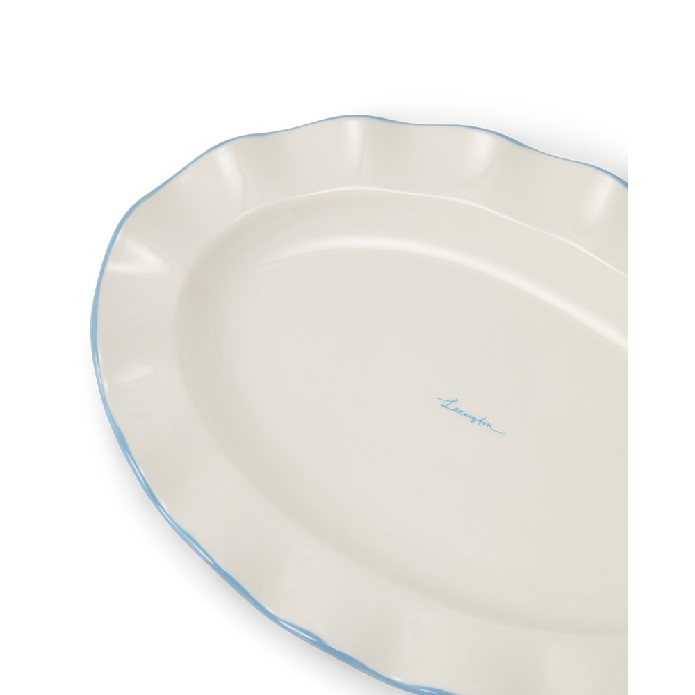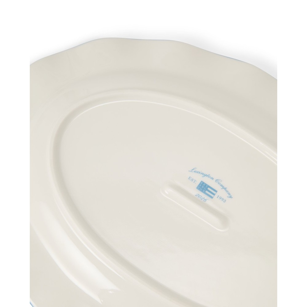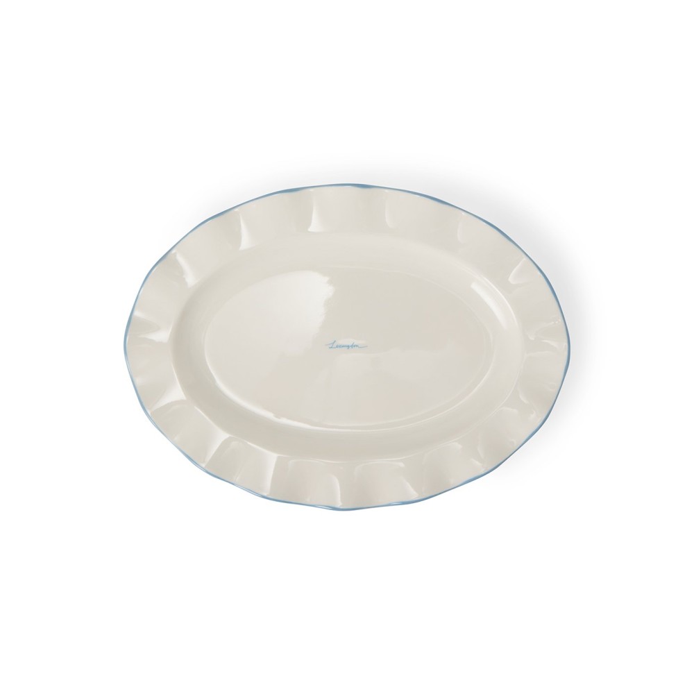 Talerz/Półmisek-Falisty owalny z kamionki, biało-niebieski-12618007-Lexington