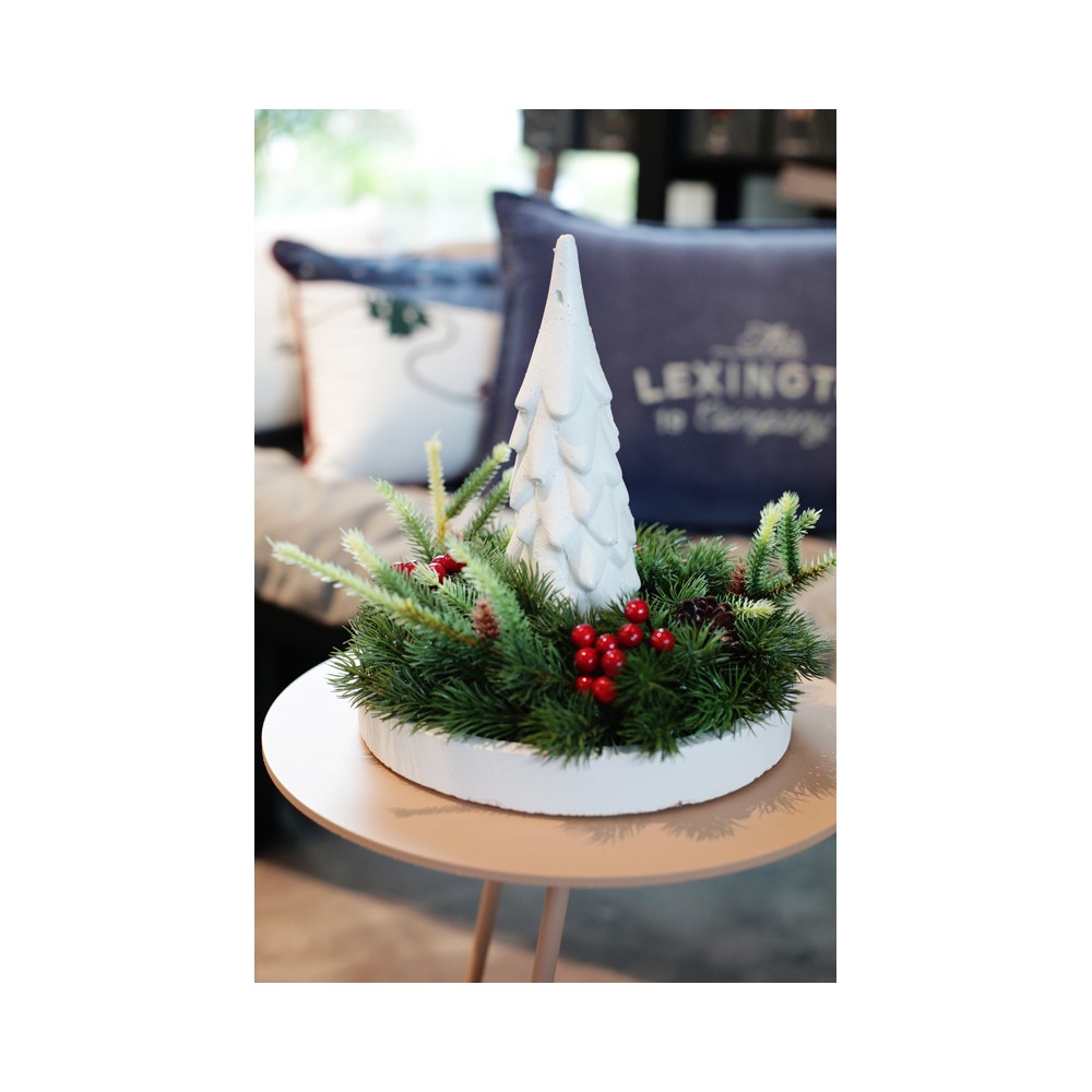 DEKORACJA CHOINKA, to tradycyjna bożonarodzeniowa kompozycja z elementami nowoczesności w postaci Choinki z betonu architektonicznego w białym kolorze oraz betonowej białej podstawy. Jak to brzmi? Wyjątkowo prawda? Całości dopełnia pachnąca świeca o nasyconej czerwonej barwie w kształcie bombki.